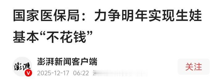 国家医保局重磅官宣!2026年起生娃住院分娩个人或“零自付”,这笔钱终于不用自己掏了?全网热议背后是年轻人生育焦虑的真实呐喊 近日,全国医疗保障工作会议释放了一则让无数家庭心跳加速的消息:国家医保局明确,力争2026年全国基本实现政策范围内分娩个人“无自付”。这意味着,未来生孩子的住院医疗费用,在政策范围内可能完全由医保基金承担。一石激起千层浪,话题瞬间引爆网络。 表面看,这是一项实实在在的福利政策,旨在降低生育成本,回应民生关切。但当我们剥开“生娃基本不花钱”这层糖衣,看到的却是当代年轻人肩上那副沉甸甸的担子。他们欢呼的,或许不仅仅是省下的几千元住院费,更是那份被看见、被体谅的微光。 网友的评论区,早已超越了政策本身,变成了一个大型的“生育压力倾诉现场”。有人直言:“重点不是生的时候花多少,而是养要花多少。”这句话,戳中了无数徘徊在生育门槛前夫妻的心声。经济成本,只是生育决策中最直观的一环,却远非全部。 从产检开始,到孩子呱呱坠地,再到后来的奶粉、尿布、早教、学区房、补习班……这条漫长的养育链条,每一环都写着“成本”二字。住院分娩费用的减免,像是为一座大山搬走了一块石头,但山依然在那里。年轻人的犹豫,是对未来漫长养育旅程的理性评估。 更深层的焦虑,来源于对生活质量的担忧和自我实现的渴望。当代年轻人,尤其是独生子女一代,他们见证了父母为家庭的全情付出,也更珍视个人的时间、事业与精神世界。生育,意味着巨大的责任和不可逆的生活转变。他们问自己:我能给孩子怎样的生活?我又将失去怎样的自己? 因此,政策善意需要被更全面地理解。它不是一个简单的“生育鼓励券”,而是一个重要的信号:国家正在从系统层面,试图为家庭减负。无论是推动灵活就业人员参保,还是计划将分娩镇痛纳入医保,都是朝着减轻“生育痛感”迈出的步伐。 然而,公众的期待显然更多。他们渴望看到教育、住房、就业环境、托育服务等更深层、更结构性压力的缓解。这就像一场接力赛,医保政策跑好了第一棒,人们热切期盼着后续棒次能紧紧跟上,形成真正的合力。 这场热议的本质,是时代发展个体诉求与传统家庭责任之间的一次剧烈碰撞。年轻人并非不愿生育,而是在高昂的综合成本面前,变得格外审慎。他们需要的,是一个更友好、更支持性的社会环境,让他们敢于去爱,敢于去孕育未来。 政策的优化是一个渐进的过程。从“部分保障”到“力争无自付”,我们看到的是方向的明确和力度的加码。它或许不能立刻解决所有问题,但至少点亮了一盏灯,告诉那些在黑暗中摸索的夫妻:你们的后顾之忧,正在被看见,正在被解决。 每一个点赞、每一条评论、每一次转发,都是民意的涓涓细流。它们汇聚起来,终将成为推动社会政策不断完善的强大力量。这场关于“生娃成本”的大讨论,价值不仅仅在于政策本身,更在于它促成了全社会对生育友好型社会的共同思考和呼吁。 未来,当生育相关的支持政策形成覆盖全周期的网络,当“生得起、养得好”成为普遍现实,或许我们回望今天,会发现这个“力争无自付”的起点,承载着多少家庭的期盼,又开启了一个怎样的新时代。这不仅仅关乎人口,更关乎我们每一个人的幸福与选择。 (来源:根据澎湃新闻、南方+等客户端报道及网络公开热议综合撰写) 生育成本 人口发展
