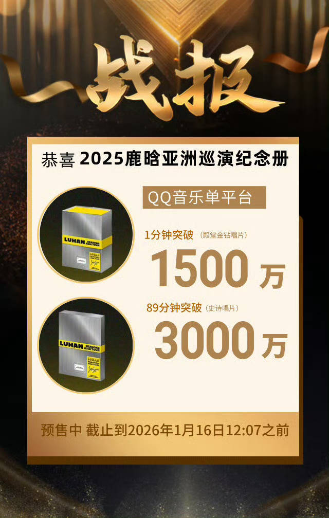 鹿晗和芦苇都太牛了吧一个半小时就达成史诗唱片,销售额破3000万鹿晗亚巡纪念册预