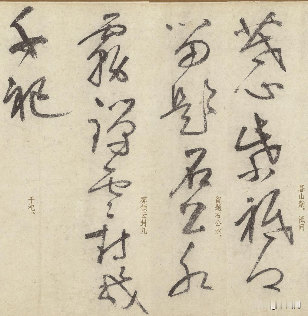 台北故宫首次展出的草书,被嘉靖帝秘藏多年,这才是草书的“标准写法”! 台北故宫珍藏着海量的书画真迹,其中不乏《祭侄文稿》《寒食帖》等顶级名作,而在今年的建院六旬展上,有一件“名不见经传”的作品被作为“首发”,首次公开展出,它便是王问的《草书煮茶歌》。王问名气不大,但却被誉为“明仲草书第一”,王铎、董其昌、倪元璐、傅山都学过他。 此作是王问晚年所写,曾被进献宫廷,被嘉靖帝收藏数十年,此后隆庆、万历、泰昌、天启、崇祯五代帝王传承有序。清朝入主京城后又成了内府秘宝。上世纪20年代被溥仪带出宫,40年代末流落台湾省,被秘藏了70余年。 《煮茶歌》为纸本册页,共6折、12页,每页纵约27厘米、横约20厘米,总长度超过2.4米,共150余字,字径较大,在4至7厘米之间。内容为自作诗文一首,文人雅隽之气溢于纸面。 释文为:华山前,玉川子,先春芽,龙窦水。石鼎竹炉松火红,鱼眼汤成味初美。君不见,真阳动时气满盈,万簇旗枪海云里。纤手摘来清露溥,黄金台畔香尘起。宜州阳阮何足奇,中泠雪鸣无乃是。琉璃下三啜饲,顿觉清寒沁人齿。数片中涵万斛花,焦吻枯肠一时洗。雅州老僧将未已,指点一翁柱下李。品尝未竟一夜仙,走入青城暮山紫。祗问留题石公水,雾锁云封几千祀。仲山王问书于宝界论抱一庐。 王问草书主要取法于张旭、黄庭坚、鲜于枢、康里巎巎诸家,路子不仅正,而且还能化古为今、化为己用,做到了“随心所欲不逾矩”的境界,这才是草书的“标准写法”,比如今那些一味“创新”“探索”的人强多了。 此作首笔侧锋轻入后迅转中锋,行笔提按自然有层次,竖画由重按渐转轻提,墨色从凝实到淡润自然过渡,转折处“圆转藏劲”,不做硬折,笔锋轻旋,比祝允明的狂放多了几分温润,较文徵明的拘谨又添几分灵动。清代吴修称其“笔法润而不腻,劲而不燥”。 结字疏朗不松散,欹正藏雅趣,完全是文人审美。字形不求紧密缠绕,中宫宽松,左右偏旁向外舒展,左右结构的字左边往往紧凑,右部舒展,疏密对比间藏着画面感。 王问的结字“险中求稳”,欹正相抵,短撇轻掠、或曲笔缓收,全随诗句节奏,绝无匠气。润墨淡笔、浓墨重笔、淡墨枯笔再到飞白,均是自然流露,比刻意安排的“墨分五色”更有文人意趣。 王问“以文养书,让草书在狂放之外,多了条雅致的路子”,既有法度,又不失意境,可以说是草书学习的范本了。 而今,我们将此作进行了博物馆级的超高清复制,并添加释文逐字对应,非常便于您临摹和欣赏。 王问草书煮茶歌 台博藏带注释高清原大微喷复刻手工经折装
