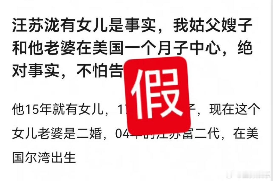 汪苏泷方辟谣汪苏泷工作室都辟谣了,假的别传了。啥证据没有就硬说人家有孩子,传得有鼻子有眼,连人家对象年龄都能编出逻辑bug来,真离谱。能不能多关注作品?巡演开得那么好,新舞台也出圈,这不比盯着私生活强?