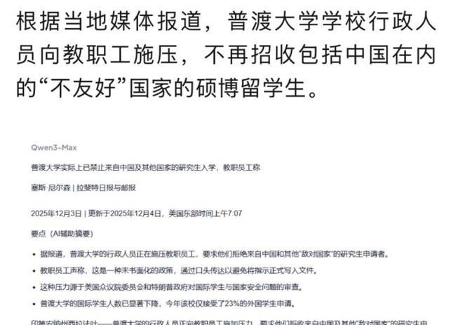 倒反天罡!天津长大的蒋濛,移民美国后,现担任校长,居然拒收中国留学生! 蒋濛小时候跟父母在当地生活,父母搞技术活儿,让他接触了不少基础知识。九岁那年,全家先去香港待了阵子,适应了那边的生活节奏,然后直接移民美国,加州成了新家。他上高中时就表现出色,数学和物理拿手。1999年从斯坦福大学电气工程专业本科毕业,紧接着2000年硕士,2003年博士,全是同一个学校搞定。博士论文涉及无线通信优化,那领域当时挺前沿。他毕业后直奔普林斯顿大学,从助理教授干起,2008年升副教授,2013年成正教授,一路专注网络理论和边缘计算,发表了不少论文,还拿过几个奖项。2017年跳槽到普渡大学,当工程学院院长,负责那块儿的教学和研究。2023年1月,他升为全校校长,成了普渡历史上首位华人掌门人。任职期间,他推了不少工程项目,还参与联邦科技政策,当过国务院科学顾问啥的。家庭上,他结婚生子,低调过日子,但职业上野心不小,经常出席会议讲5G和AI。 2025年3月,美国国会中国特别委员会给蒋濛写信,要普渡提供中国学生在STEM专业的详细数据,说是担心国家安全风险。信里把美国学生签证系统比作北京的“特洛伊木马”,要求学校加强审查。普渡回应了,报告说学校有2183名中国籍学生,其中本科783人,占总数的1.8%,硕士和博士加起来1400多人。报告还提到,学校已经加强背景检查,避免敏感技术外流。结果,从那以后,行政层开始口头指导各个院系,在招生时回避来自中国、俄罗斯、伊朗、古巴、北韩、委内瑞拉这些国家的硕博申请人。教师们说,校方没发正式文件,但会议上反复强调,因为出口管制和安全规定,得这么干。招生办公室处理申请时,直接把这些国家的档案搁一边,拒绝信由院系发,但实际决定是校方推动的。蒋濛作为校长,主持这些讨论,确认政策执行。报道显示,2025年夏季,普渡撤销了超过100名中国研究生的录取通知,本来他们已经拿到offer,却突然被刷掉。教师觉得这不公平,像是被迫执行歧视,但校方坚持这是合规需要。整个过程源于联邦压力,普渡成了试点,蒋濛主导实施,导致中国申请者数量锐减。 事件曝光后,闹得沸沸扬扬。美国当地媒体先报道,普渡学生报《Purdue Exponent》详细描述行政施压细节,中国留学生和校友群炸锅了。网上指责蒋濛天津出身却这么干,觉得他数典忘祖。国会报告拿普渡当案例,推动全国高校收紧对华政策,说中国学生是间谍风险。普渡官方回应,这是为了国家安全,不是针对个人,但争议没停。留学生组织发起请愿,签名上万,要求学校公开招生标准。媒体跟进,采访受影响学生,他们说本来计划好一切,却莫名被拒。蒋濛继续当校长,参加校董会和联邦听证,但名声受损,两边舆论都鄙视他这种选择。事件持续发酵,成了中美教育摩擦的典型,普渡声誉也受波及。中国留学生转投其他学校,普渡的国际多样性下降。蒋濛的决定,让很多人觉得他背弃根基,最终钉在耻辱柱上。