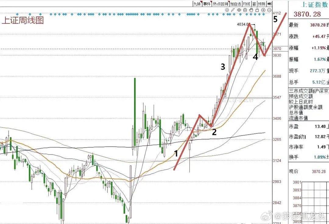 收评: A股午后大反转,波段行情开启了吗?今天的阳线有3个意义从今天市场收盘的情况来看,市场午后走出了激动人心的反转行情。从下午的1:30开始,市场的分时图走出了大角度的拉升。人工智能硬件,证券等权重板块带头大幅度的拉升,其他板块迅速跟随,最终形成了大合唱的走势。还记得在今天中午午评文章当中大家请看图一,我就明确的判断,今天下午或者还能向上加速。目前来看,市场果然验证了莎莎的观点。而且关注莎莎哥的朋友都知道,昨天中午的时候,我就明确告诉大家,市场已经基本调整到位,3816点就是短线的铁底支撑。而且在今天中午的时候,我更是抛出了明确的观点——在3800点附近大胆看多。从午后的走势来看,我的观点再次得到市场的验证。那么现在问题的关键来了,今天的大阳线有没有持续性呢?接下来又怎么看呢?今天这个大阳线有三个重要的意义:第一,今天三大指数都拉出了明显的大阳线,低位大阳线,是短线典型的止跌企稳的信号,上证指数今天在3800点附近拉出的大阳线,代表了3800点,接下来将是很长一段时间主力的铁底支撑。第二,今天这个大阳线出来之后,短线优先看多,行情的持续性,目前还不知道,但是今天之后,优先看多,却是比较明智且正确的选择。第三,今天的这个阳线,有可能宣布了周线级别第5浪上涨的开始。什么是周线级别的第5浪?大家请看图二——上证指数周k线图。当然,这个判断毫无疑问是比较大胆和超前的,我们后续还要走一步看一步,逐步验证。我今天真的是非常的开心,因为市场的走势确实同莎莎预期的一样。而且大家最近也确实出现了账户的明显回撤,所以需要这样一根大阳线来打打气。好在最关键的时候,作为一个纯技术派的老手,对于市场关键转折点的判断,没有出什么差错。我想这也就是我这个纯技术派老手存在的意义吧。这也就是所谓的不负所托。最后,大家看一下图三我昨天晚上更新的,关于今天走势的手绘预测图,昨天莎莎发的是一颗止跌的十字星,在在我的预期当中,十字星之后再连接大阳线 。看来主力是等不及了,两天合并成一天走了。这也是不错的。关于明天走势的手绘预测图,我将会在稍晚一点更新,兄弟朋友们点赞,评论就是对我这个纯技术派的最大支持!