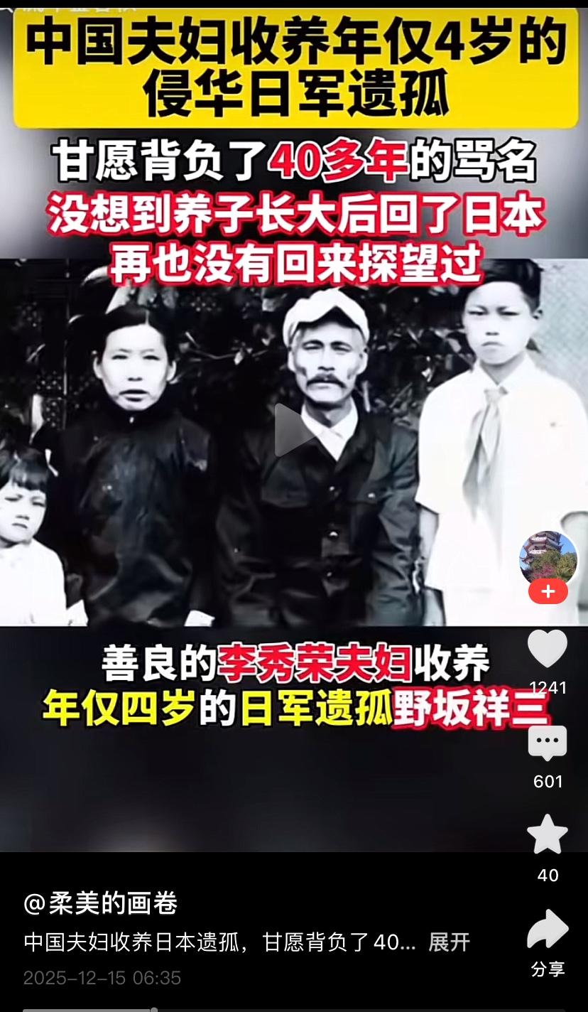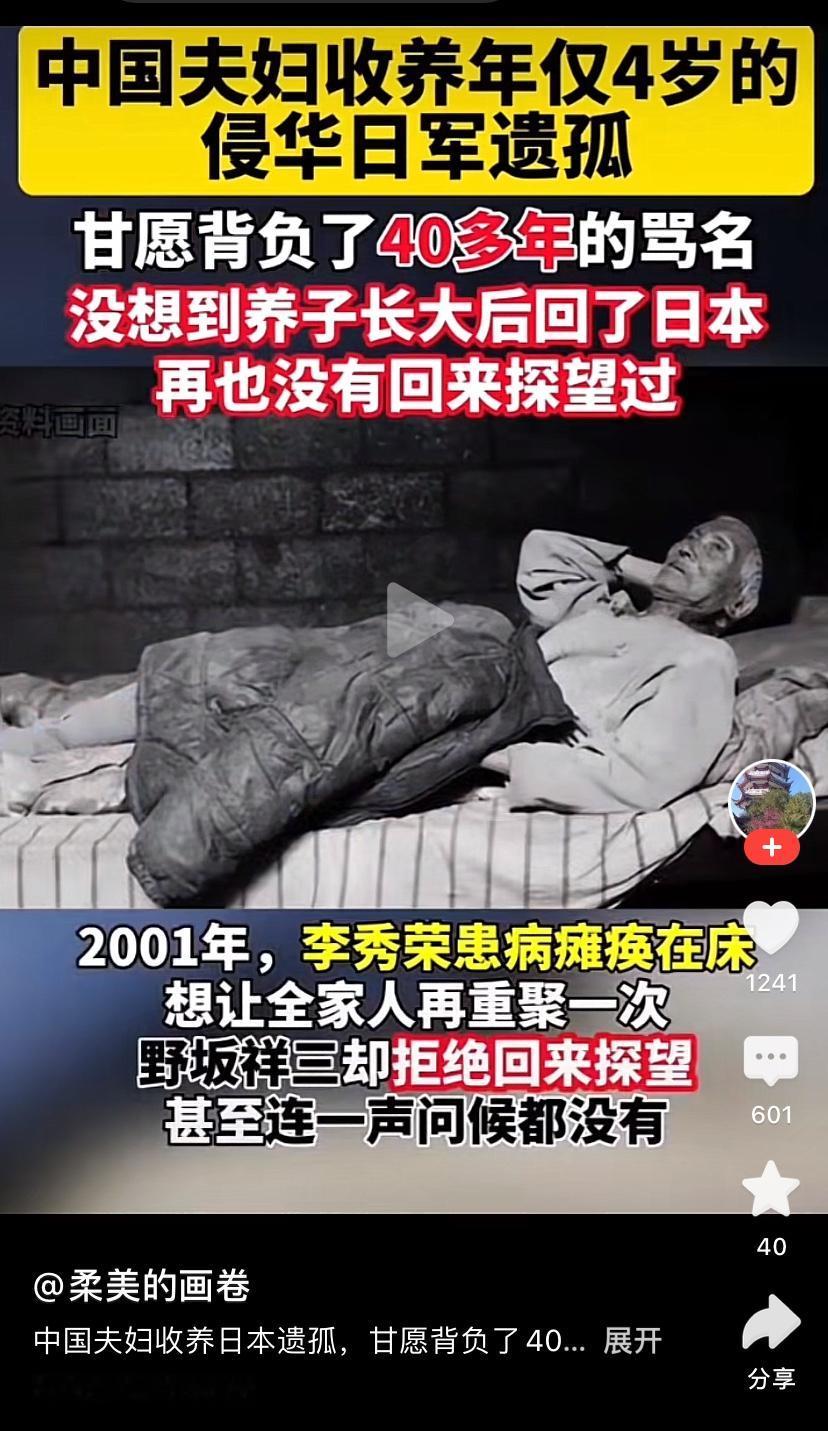 看看 这就是日本人骨子里的冷血! 中国养父养母背负骂名40年抚养他长大 长大后他带着妻儿却回了日本 再也没有回来探望过 近50年生活在中国土地上 他却一点儿也没被我们中国人的 善良和感恩熏陶那么一点儿 都说养恩比生恩大 更何况幼时在那样的境况下 他的养父母背负国家血仇都抚养了他 他却那么冷血无情 这种人说不定内心里还在埋怨 是他的养父母收养了他 让他没法早日回国 所以这样的人根本就不应该收养他 当初就应该让他自生自灭!