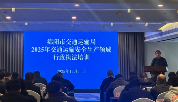 为贯彻落实市委、市政府“双提双解”工作部署,夯实交通运输安全生产执法工作根基,全面提升执法队伍专业素养与履职能力,12月11日,绵阳市交通运输局组织开展全市交通运输安全生产领域执法专题培训。各县市区(园区)交通运输执法机构负责人、执法骨干,局直各单位及局机关相关业务科室负责人参加培训。本次培训紧扣行业安全执法工作实际,坚持以学促干、以学提能,聚焦交通运输安全生产执法核心任务,为全市交通运输高质量发展筑牢坚实安全屏障。
