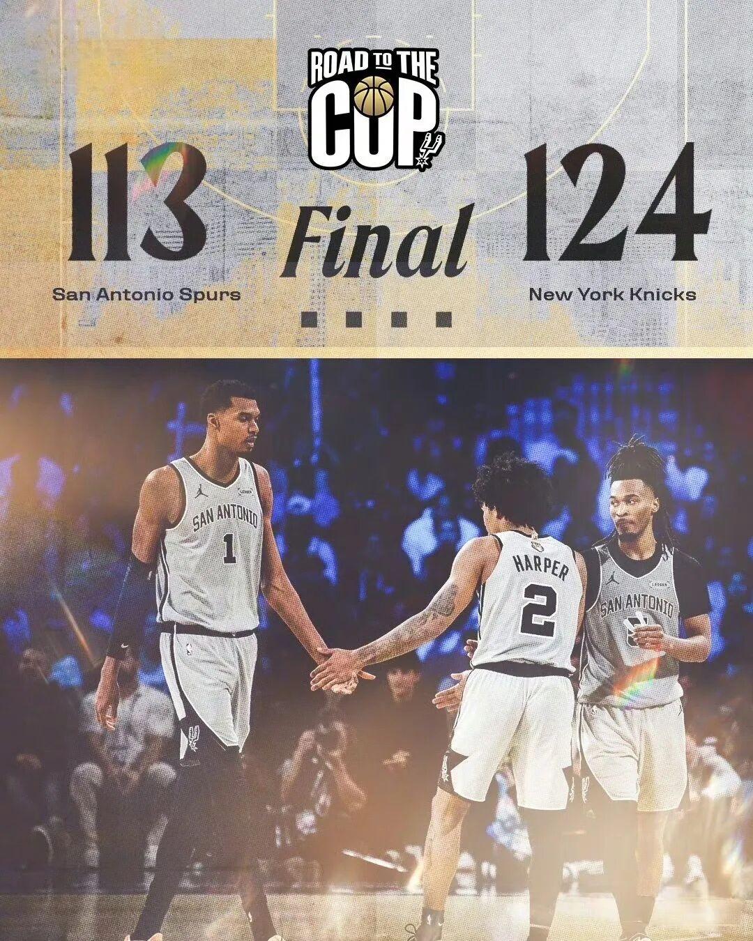 文班亚马无缘首冠,赛后落泪,未来是我的,但现在是大头的! 啥时候又整出来一个冠军杯,冠军杯的冠军队伍每个人奖励50万美元,这不是纯纯送福利嘛,这个奖金相当于普通球员半年的工资了,可以很好的改善一下底层球员的生活,这才是抱大腿的意义!队中主力也可以变相帮助队友了! 咱们还是夸一下克拉克森,这个曾经羞辱过我们的亚洲第一后卫,今天又拯救了尼克斯队,末节拿下8分,全场15分,助尼克斯拿下杯赛冠军! 今天马刺和尼克斯都有7人得分上双,双方打的有来有回,确实给大家奉献了一场精彩的比赛!马刺虽然年轻,但是完全不惧大场面,真的也是差一点点,文班就能拿下生涯首冠了!可惜了,只能说,赛程还在继续,后面的比赛好好加油吧!文班亚马 马刺队
