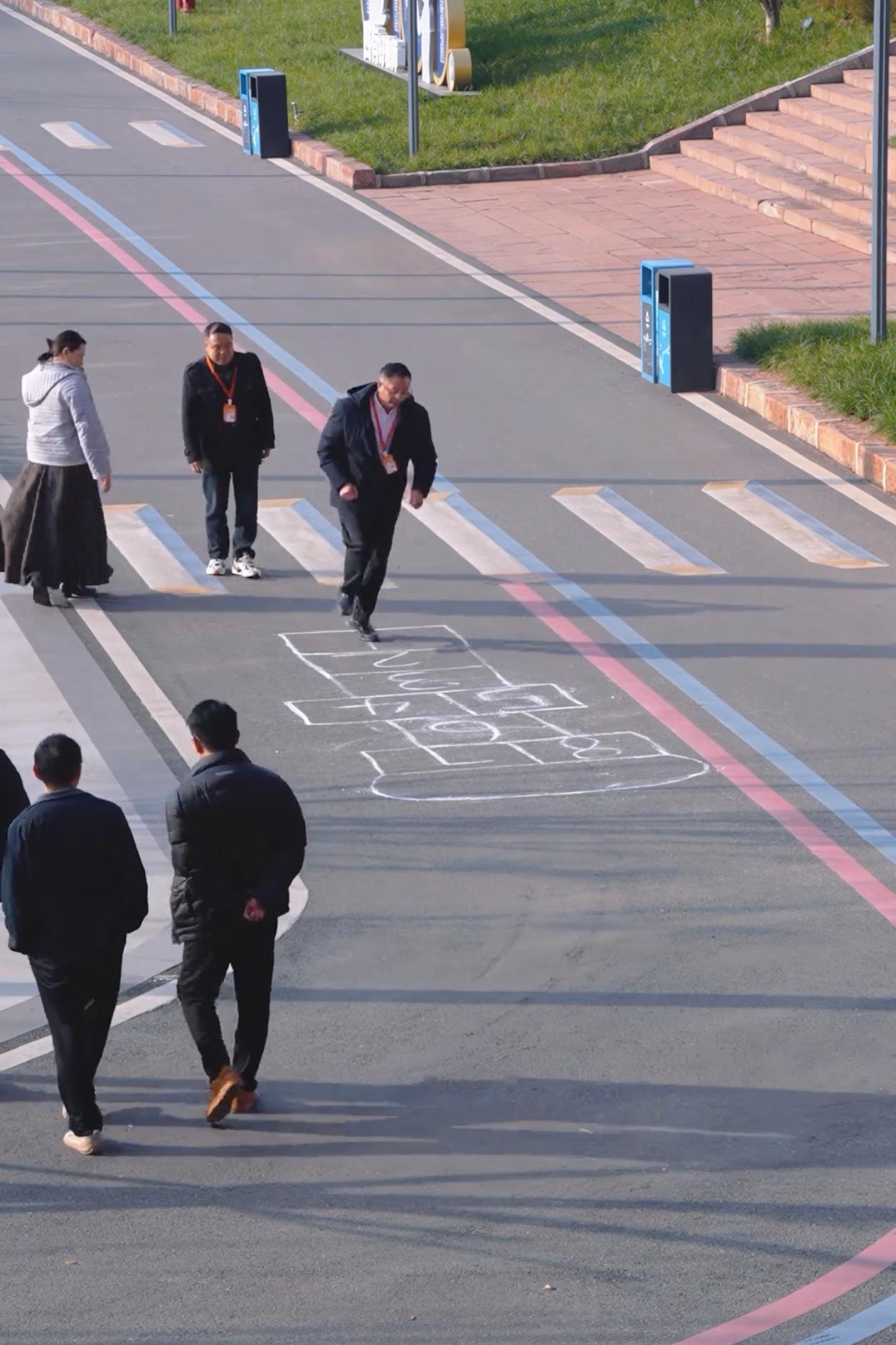 四川德阳,一所高中的操场上,有人用粉笔画了跳房子的格子,结果学生们路过看到就跳起来了,跳得那叫一个欢快。没想到保安大叔看到了也忍不住,跳的时候还有点拘谨,但脸上笑得可开心了。 更有意思的是,一位老师也加入进来,跳到最后一格的时候突然就停住了,就那么站着看了好一会儿,也不知道在想些什么。 视频传到网上以后,评论区直接炸了。有网友就说:他们跳的哪里是游戏啊,跳的明明是回不去的童年,看得我眼眶都湿了...[流泪] 还有网友表示:那个老师站在最后一格不动的样子,我太懂了,小时候跳到终点的时候总觉得自己赢了全世界,现在跳到终点却发现,童年真的回不去了啊...[捂脸] 不得不说,就这么简单的几个格子,居然能让学生、保安、老师这些不同年龄的人都玩起来,而且每个人跳的时候表情都不一样,学生是纯粹的快乐,保安是找回了感觉,老师大概是想起了很多事情吧。 说到底,谁小时候没玩过跳房子呢,那时候放学后在地上随便画几个格子就能玩一下午,现在想玩都不知道去哪找那种感觉了。 对此大家怎么看?