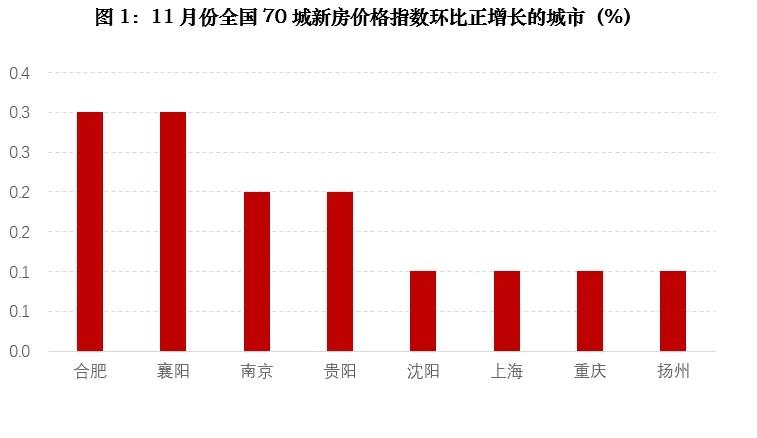 统计显示,11月份全国70个城市新房价格指数环比正增长的城市至少有8个,包括:合肥、襄阳、南京、贵阳、沈阳、上海、重庆和扬州。从分布上看,此类名单覆盖了一二三线各线城市,进一步说明各线中均有表现积极的城市。其中一线城市中,上海表现最好。二线城市中合肥、南京、贵阳、沈阳和重庆表现最好。三线城市中,襄阳和扬州表现最好。我们认为,对于此类房价保持环比正增长的城市,需要积极肯定。尤其是对于合肥、南京和重庆等城市,当前房价表现不错,说明此前经历了一轮深度调整后具有较强修复能力。在此前杭州、成都、西安等城市领涨的基础上,当前此类城市成为房价上涨的典型省会城市。