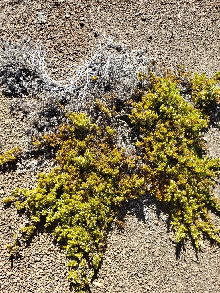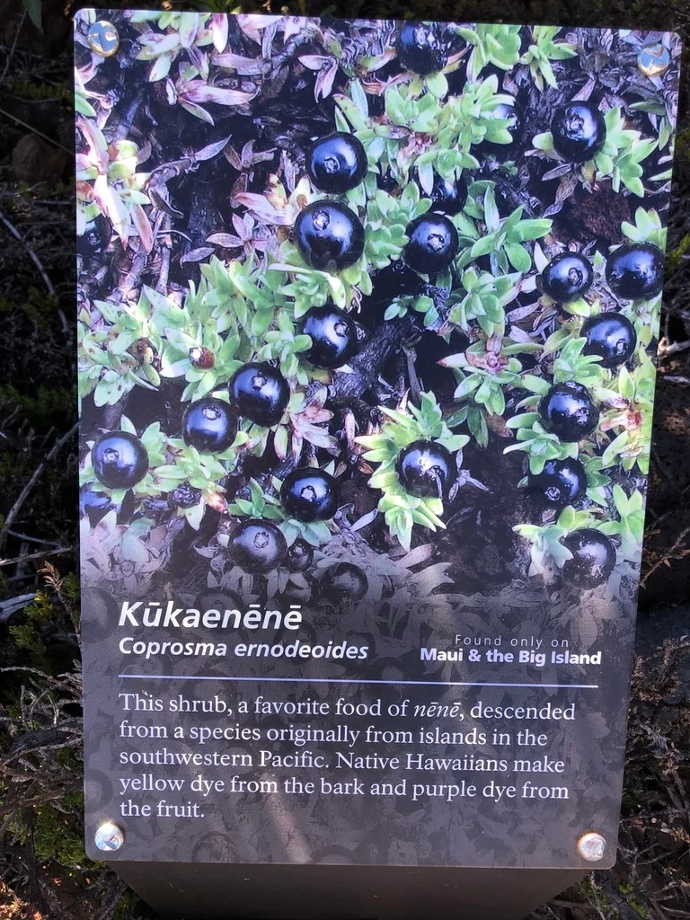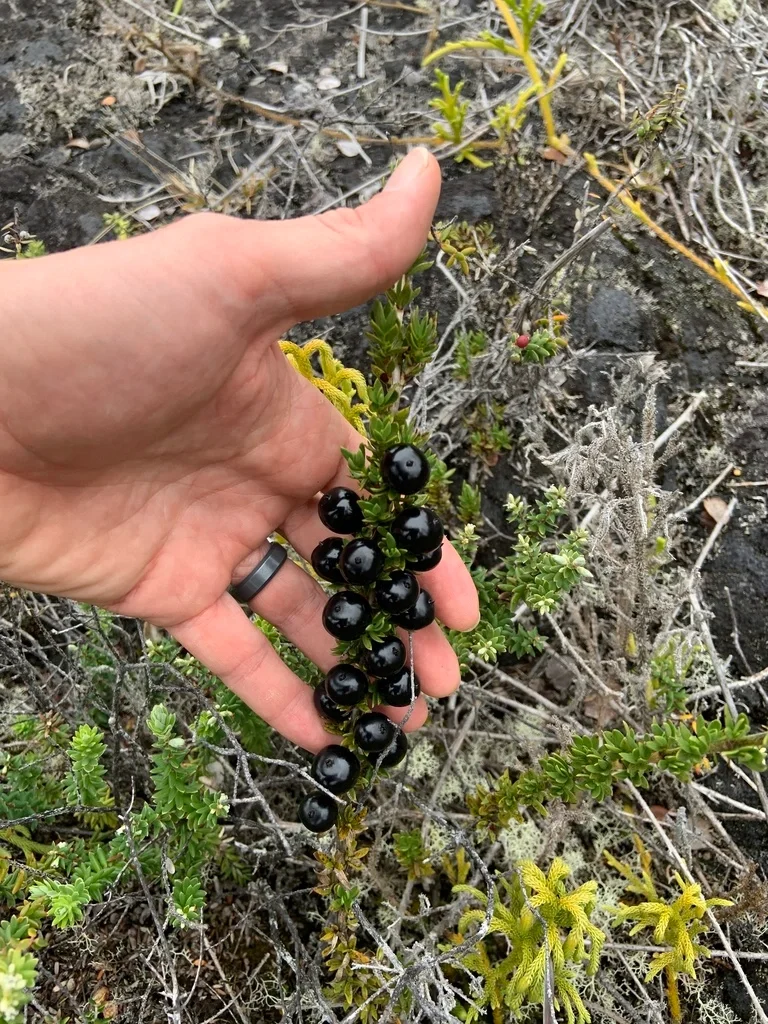 一种匍匐灌木,叶狭窄,有光泽,紧密堆积,深绿色,对生。 花朵很小,最明显可见的特征是8-20毫米的浅色枝条。 独特的有光泽的黑色果实直径为8-13毫米。 这是夏威夷群岛上唯一一种有黑色果实的蛋白石莓(Coprosma)。在英语中被称为黑果椰菜。 它的叶子闪闪发光,又窄又不到一英寸长。它很容易感染粉蚧、蓟马和蚜虫。 夏威夷土著人食用这种水果,并且用这种水果作为黑色染料。