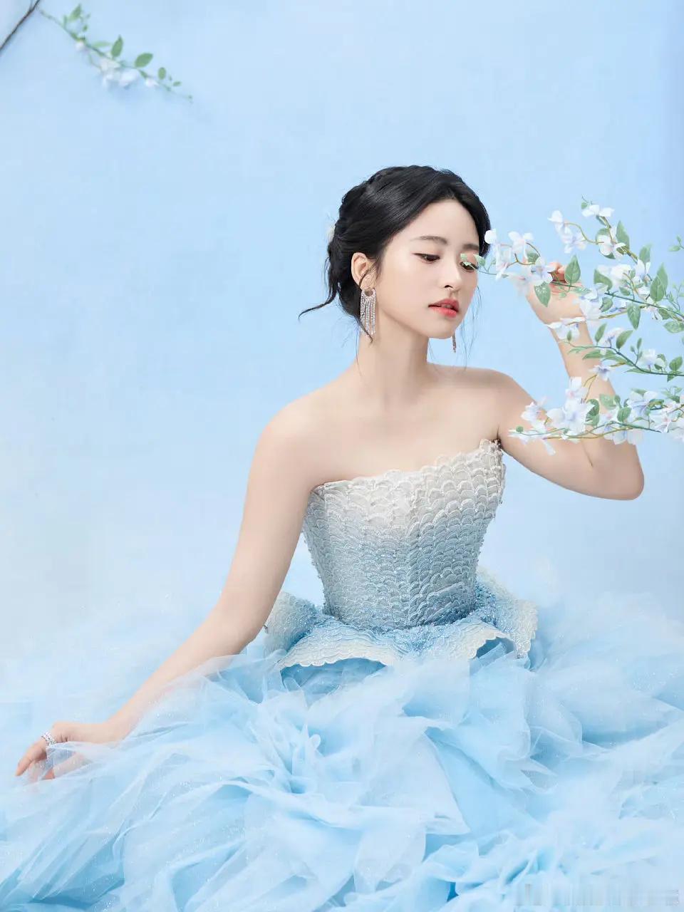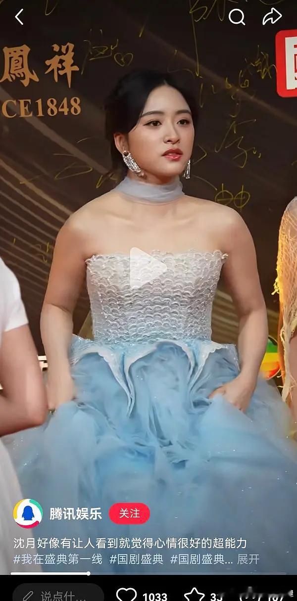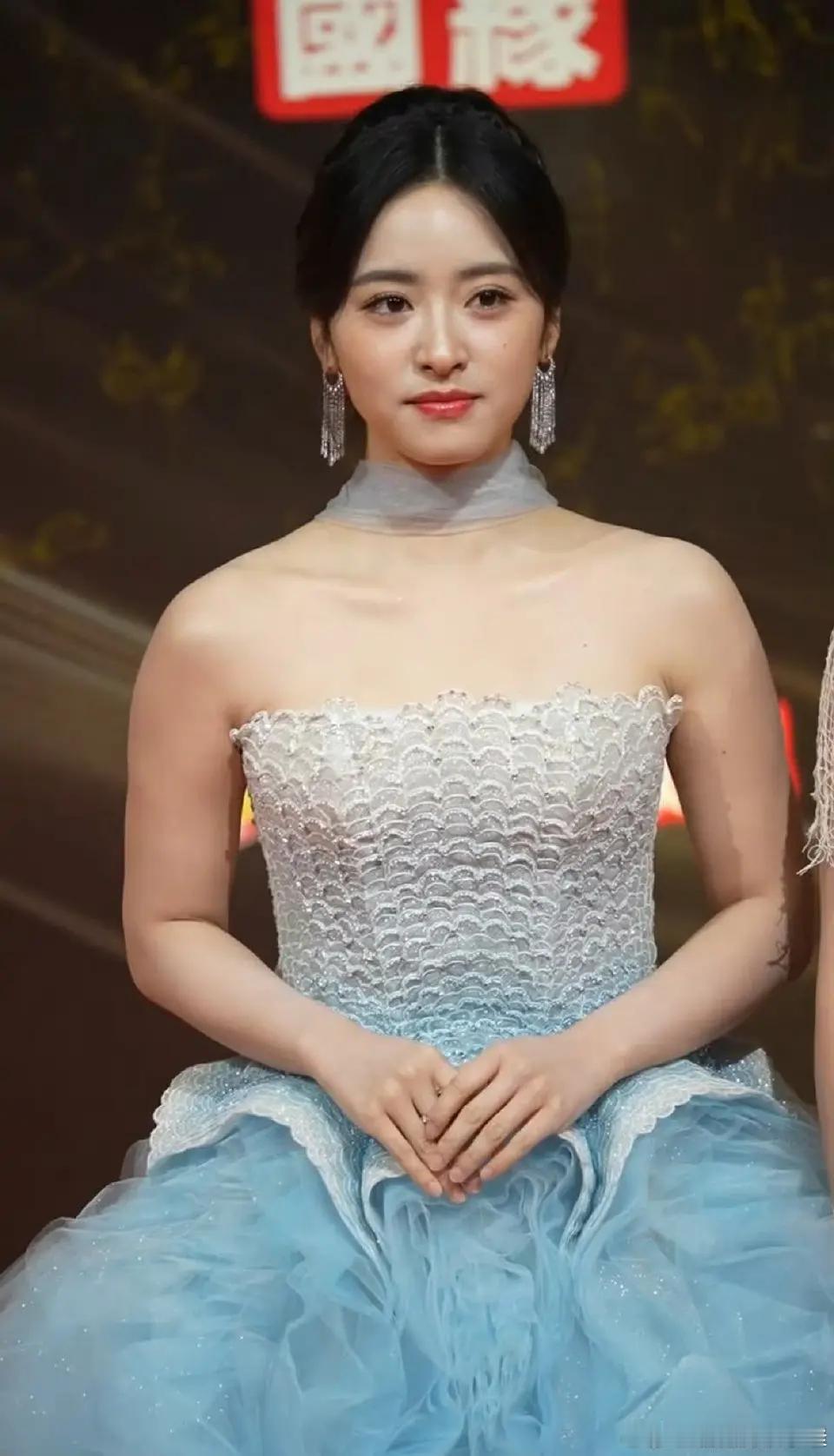 沈月简直是人鱼公主具像化沈月亮相2025国剧盛典,她身着淡蓝色抹胸礼服裙,精致的