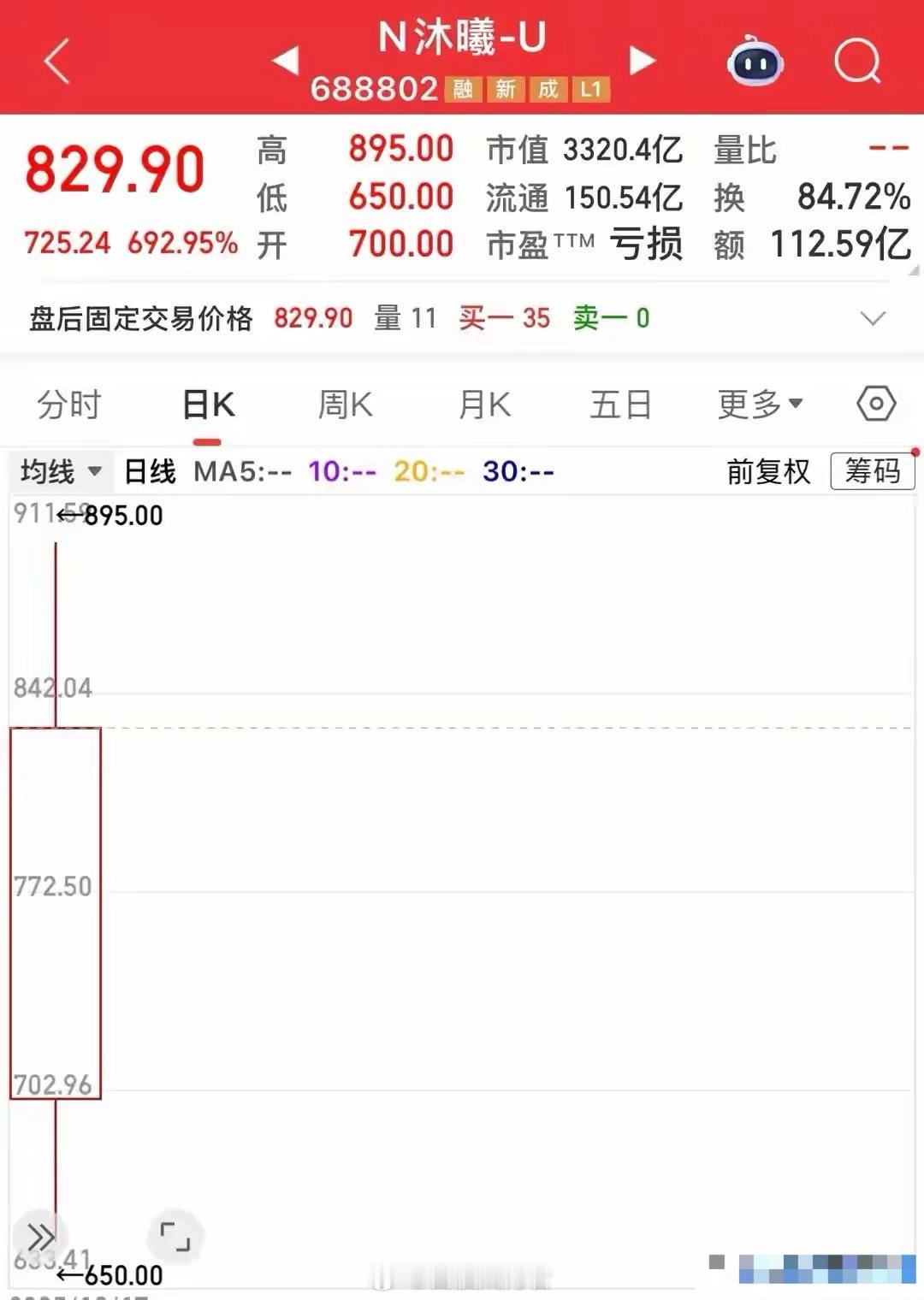 沐曦股份今日上市,收盘价829元,中一签盈利达36.25万元。这家平均每年亏损10亿、三年累计亏掉30亿的半导体芯片公司,发行价104.66元,开盘即飙至700元,大涨568%,盘中最高冲至895元,若此时卖出,一签可赚39.5万,热度远超此前上市的摩尔线程。作为又一家亏损上市的芯片企业,其背后是研发投入高、见效慢的行业特性——公司甚至预计2025年仍将亏损11亿,若不通过IPO融资,持续经营难度不小。尽管业绩尚未兑现,市场却给出了积极反馈,首日交易量达112.29亿,换手率85%,足见资金热情。这让人联想到此前的摩尔线程,同样亏损上市,股价一度涨至941元。科创板对亏损科技企业的包容,让不少公司获得了持续研发的底气,甚至有企业已从亏损走向盈利。但需警惕的是,当前股价已透支未来多年预期,首日追高风险不小——比如895元买入的投资者,当日浮亏就达8%,且新股次日下跌概率较高。说到底,这既是市场对芯片赛道的长期看好,也夹杂着短期情绪推动。投资这类企业,本质是押注未来的技术突破,但若脱离业绩支撑,过高的估值终究需要时间来消化。(以上仅为个人观点,不构成投资建议,股市有风险,入市需谨慎)