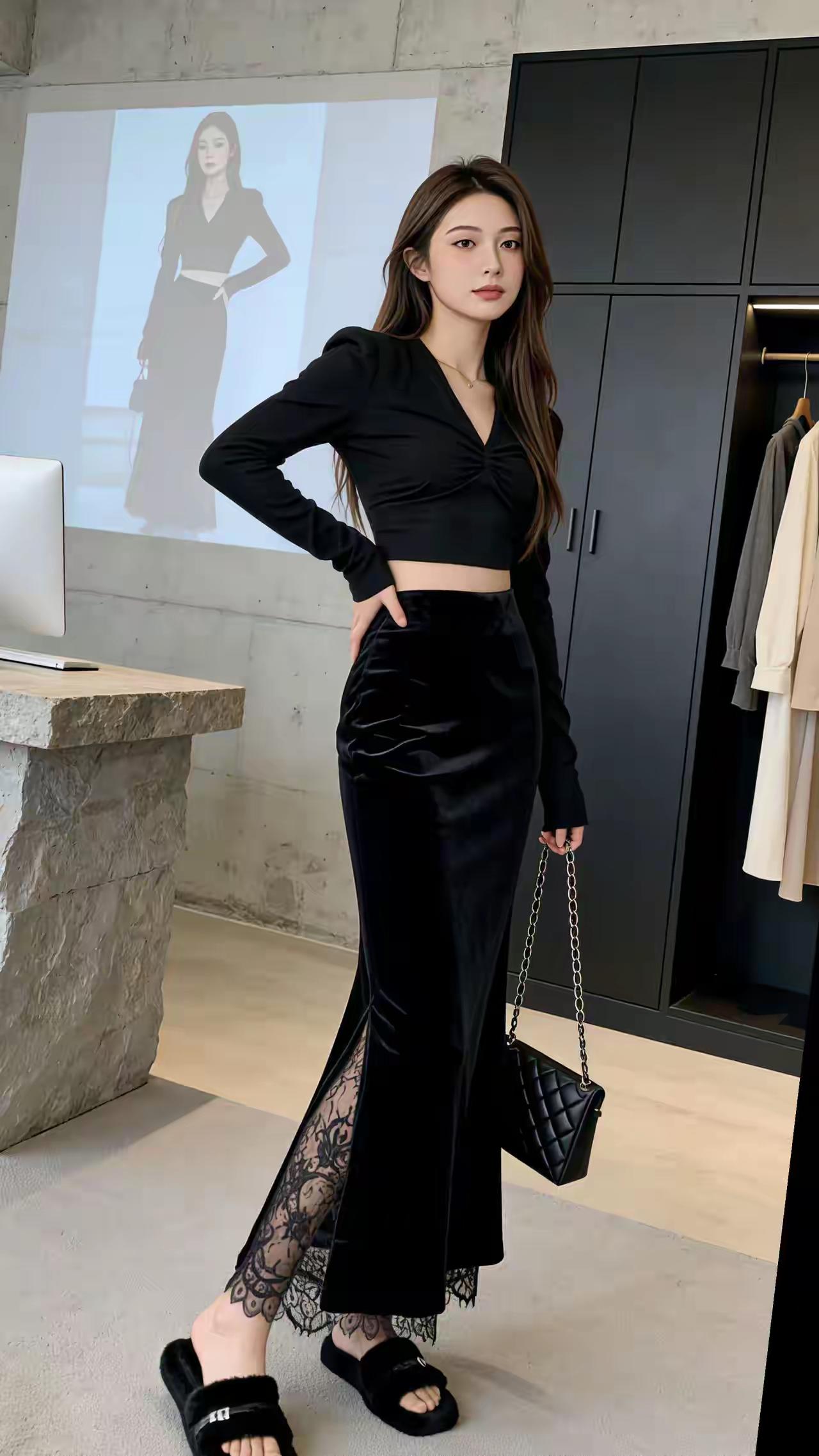 优雅气质穿搭,米色上衣+黑色百褶裙,清新自然,轻松展现女性魅力!🌸💃🏻