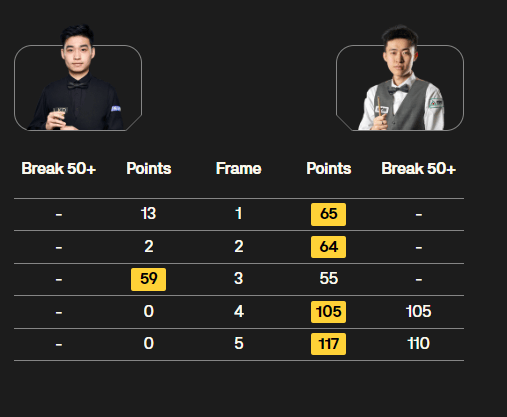 全场比赛,常冰玉打出两杆破百(110、105),斯佳辉没有打出一杆50+。