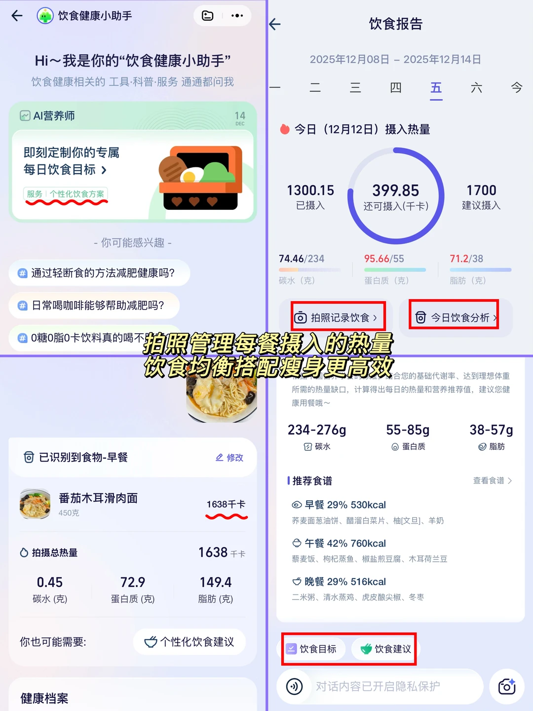 饮食上像有营养师在身边督促⏰现在我也养每餐拍照记录的好习惯,阿福会自动计算热量和营养搭配,帮我避开反弹雷区❌真的太适合我这种带娃的懒人宝妈了~省心又高效😘