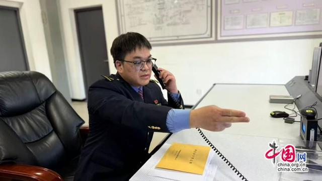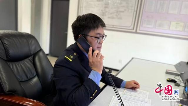 2025年12月17日,正在电话联系邻站的许光贵。成俊摄