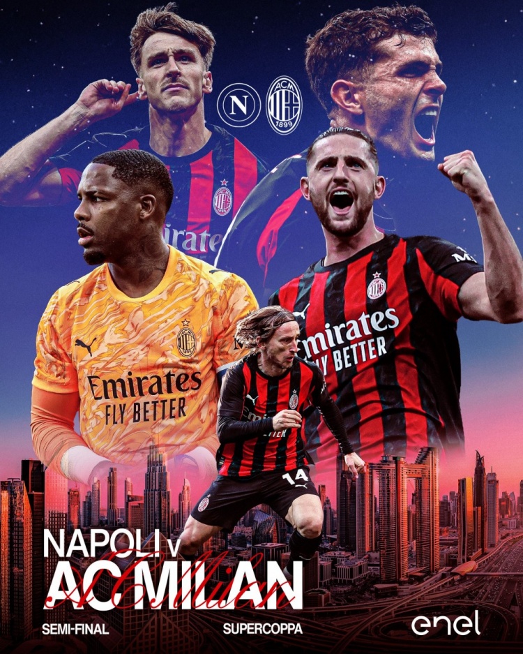米兰发布意大利超级杯海报:迈尼昂、莫德里奇、拉比奥特出镜