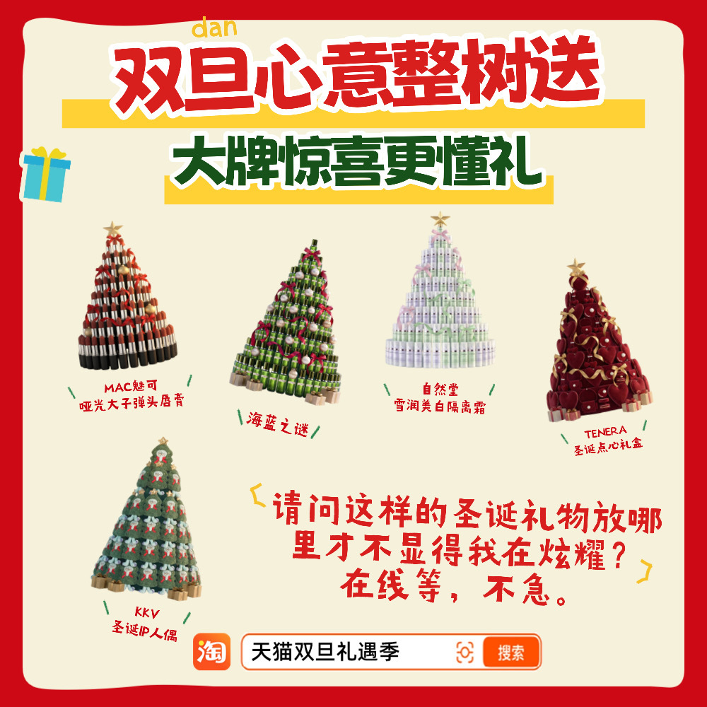 双旦天猫更懂礼双旦上淘宝买礼物更优惠双旦给男友送“树”礼,一树一树送不停!他乐到承包我整年口红,这波甜蜜值拉满~