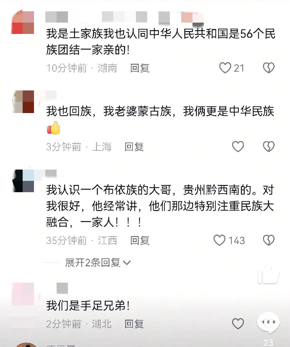 一直力挺汉文化复兴的网友突然亮身份证,原来他是回族,评论区居然清一色全是支持。他就是觉得找回民族自信、记住来时的路是好事,既深刻认同56个民族是一家,也从没忘记自己是中国人。想想也是,喜欢汉服、传承传统礼仪,本来就是对中华文化的热爱,跟民族身份有啥关系? 可网上总有些人为点小事就扩大化,动辄扣帽子挑对立。其实大家心里跟明镜似的,文化复兴不是某一个民族的事,而是所有中国人的共同心愿。就像评论里有人说的,不管哪个民族,爱自己的国家、珍视共同的文化,就该被点赞。那些急着跳脚的,大概是不懂这种刻在骨子里的文化认同吧。