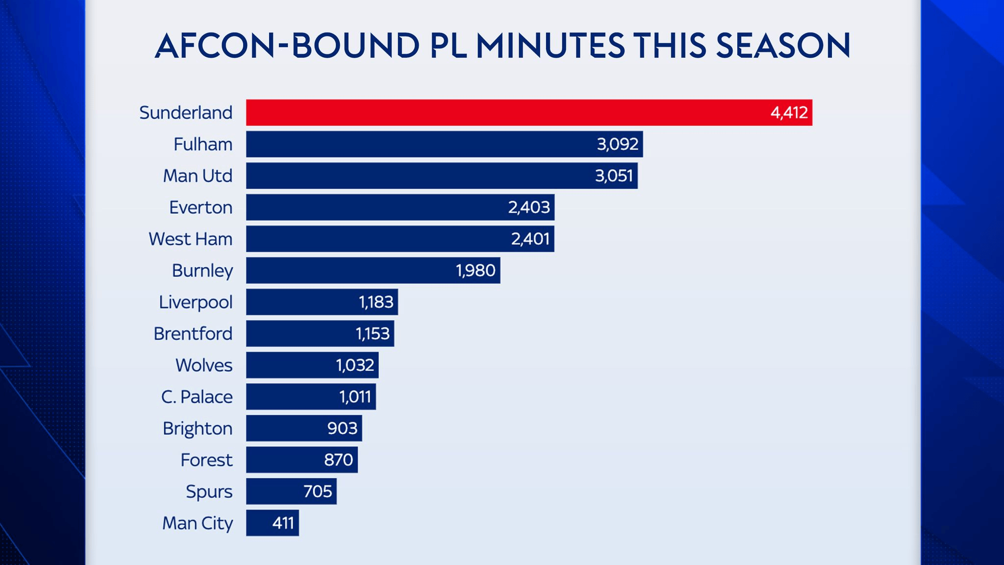 从人数来看,桑德兰是受影响最严重的英超球队,共有6名球员入选非洲杯名单,这一数字是其他任何英超球队的两倍,也是五大联赛中最高。