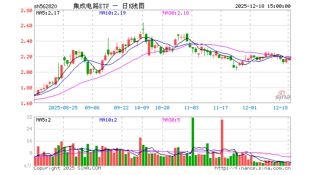 12月18日,集成电路ETF(562820)跌0.18%,成交额357.12万元。当日份额减少200.00万份,最新份额为5613.60万份,近20个交易日份额减少800.00万份。最新资产净值计算值为1.21亿元。