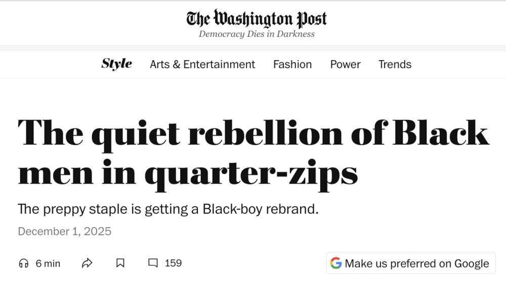 与其研究某个族群是不是为了改变刻板而选择半拉链服饰,倒不如研究为什么主流时尚风格看上去一直定格在了老钱风身上。