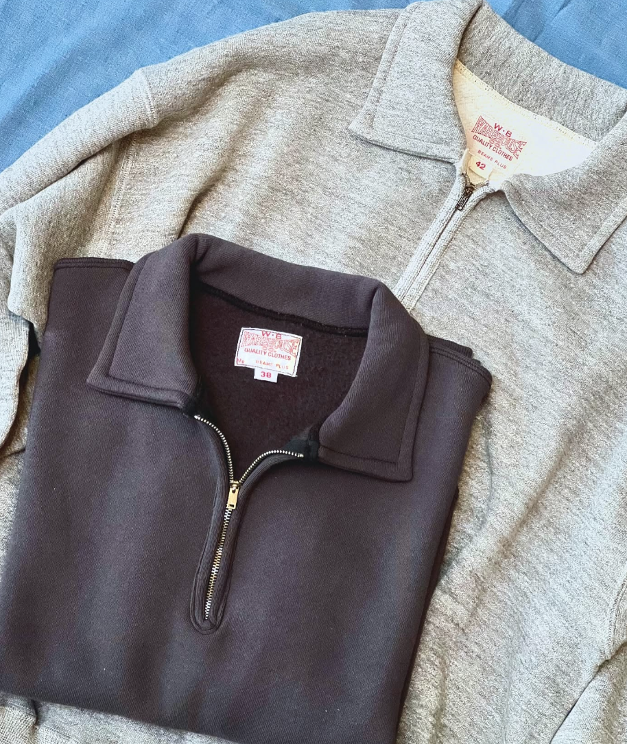 随着拉链的普及,这种半开衫得到升级,从扣子变成了拉链。在众多单品中,最著名的一件可能就是英国的丹尼森罩衫了。