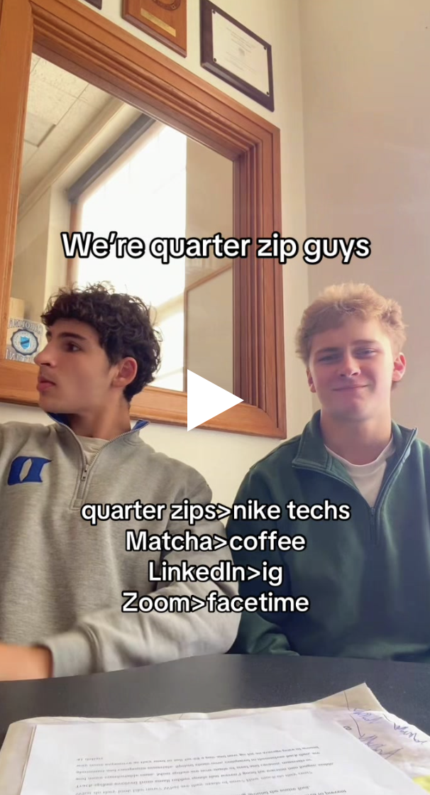 今年11月6日,一位名叫TikToker用户@whois.jason和朋友穿着半拉链毛衣一起喝抹茶的视频。