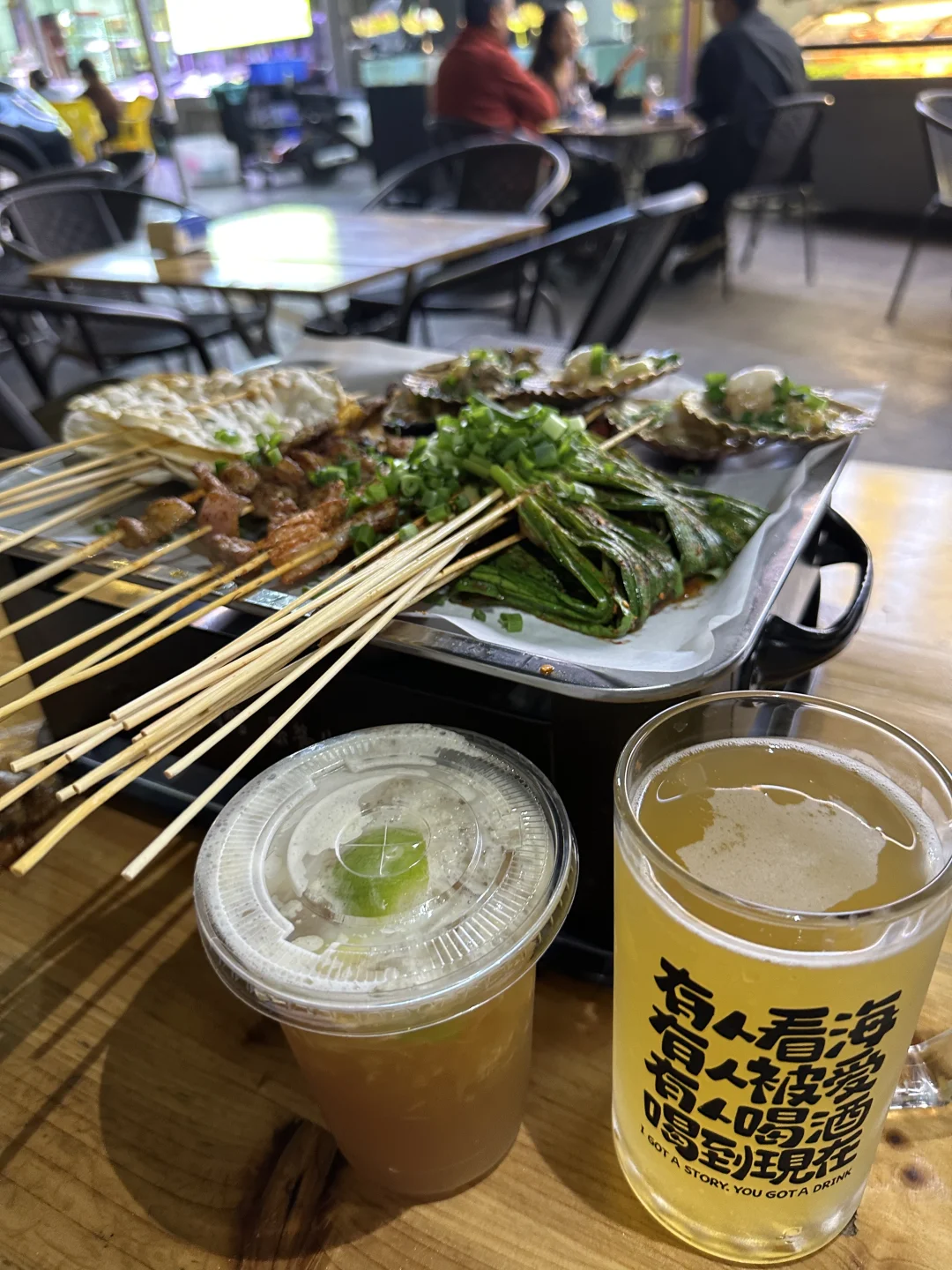 玩到晚上,去吃了心心念念的烧烤,撸串喝酒,一天的疲惫瞬间消散。吃完烧烤还去打了会儿网球,运动一下超解压,完美结束这充实的一天~