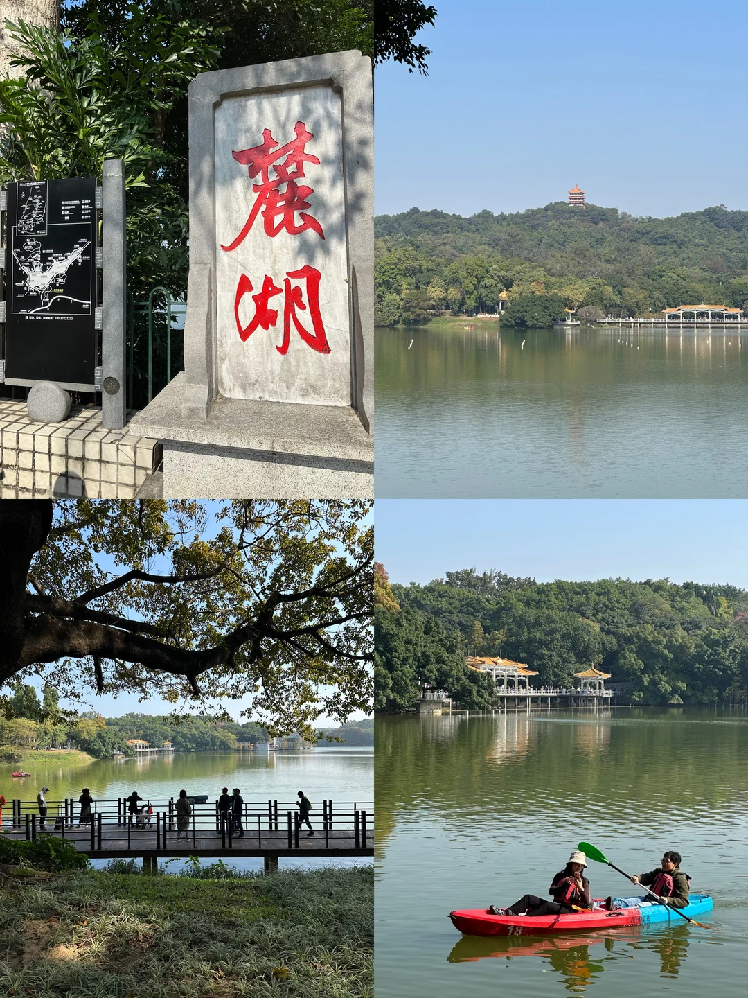紧接着骑到旁边的麓湖公园,湖面像镜子一样,倒映着岸边的绿树和远处的山峦,微风拂过,湖面泛起涟漪,美到失语。