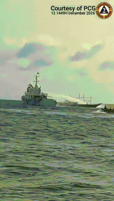 12月12日,菲律宾海警组织大量船只在仙宾礁附近海域挑衅,菲海警出动4403、4411号巡逻艇,护送20多艘渔船非法侵闯,理由是出来“捕鱼”。中国海警提前预警,对试图侵闯的菲方船只采取喊话警告、外逼驱离等必要管控措施,菲律宾船只不听劝只能用水炮驱离。作为常态执行很正常,但菲律宾向来恶人先告状,事后炒作遭到中国海警水炮袭击,造成船只损坏人员伤亡。