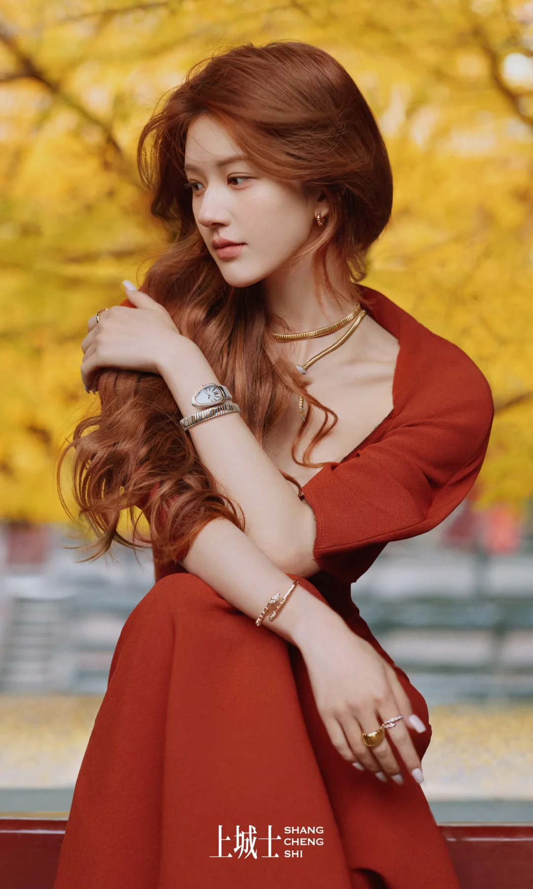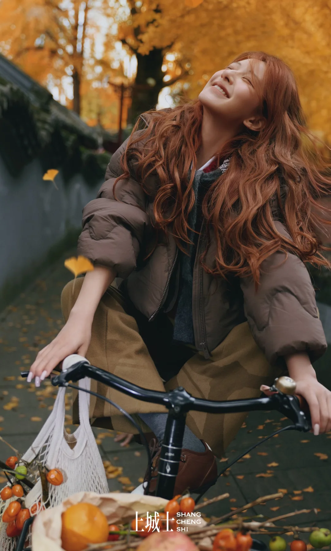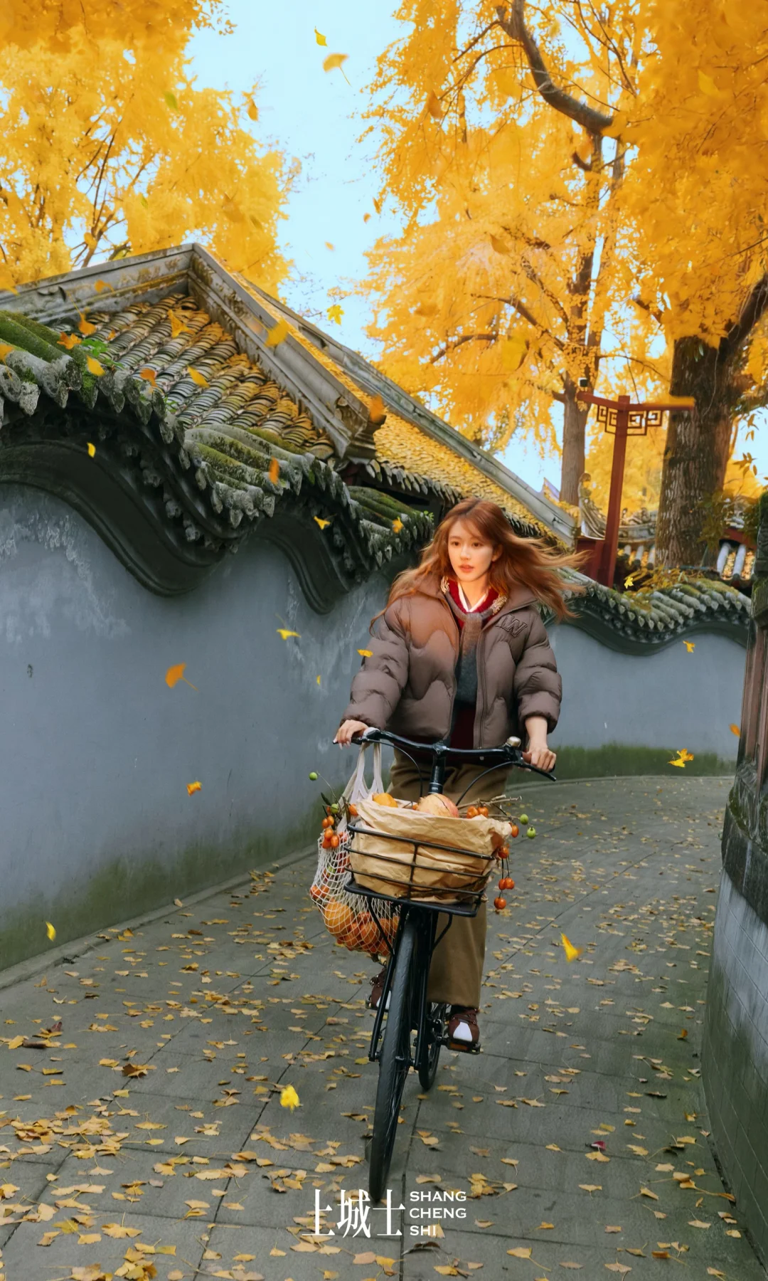 赵露思这组上城士适合全屏观看,漫步秋日里的成都,成为温柔又美丽的故事主角! 图片来源于上城士