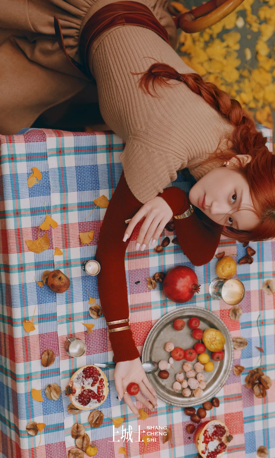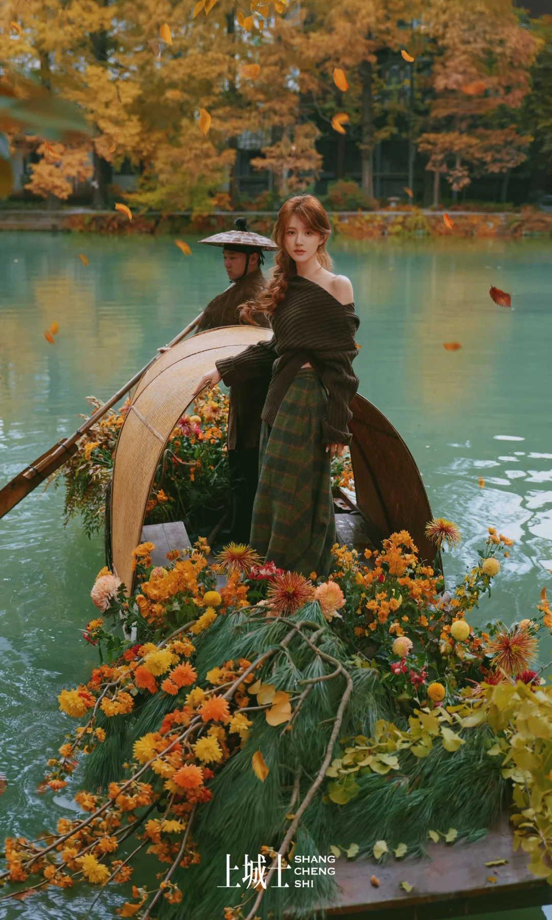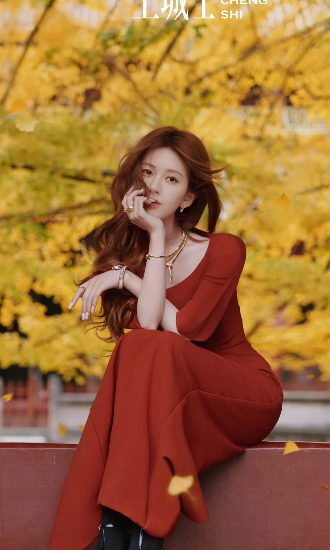 赵露思这组上城士适合全屏观看,漫步秋日里的成都,成为温柔又美丽的故事主角! 图片来源于上城士