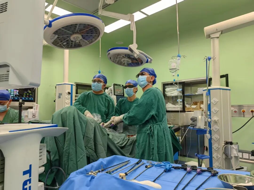 李海量博士(右三)为患者行“3D腹腔镜下直肠游离悬吊术”