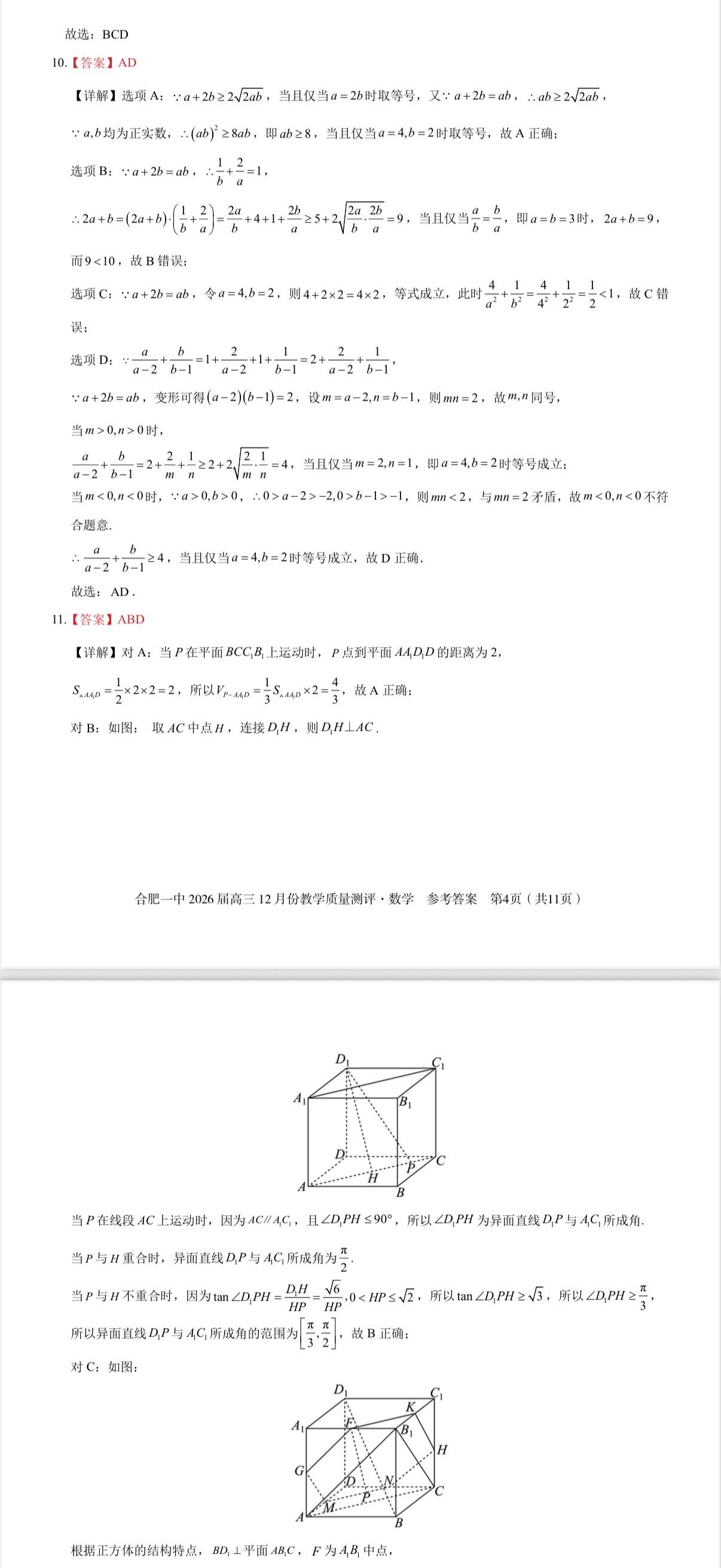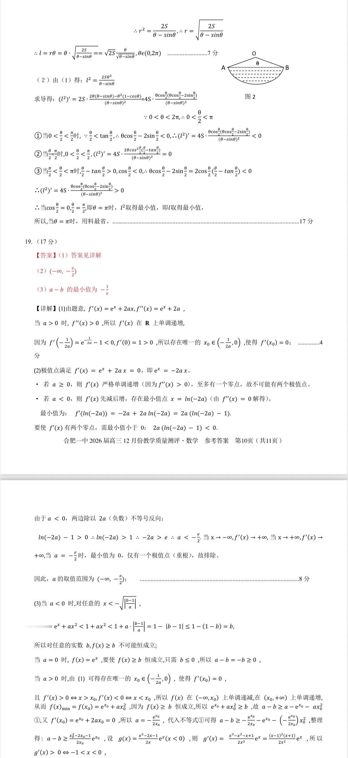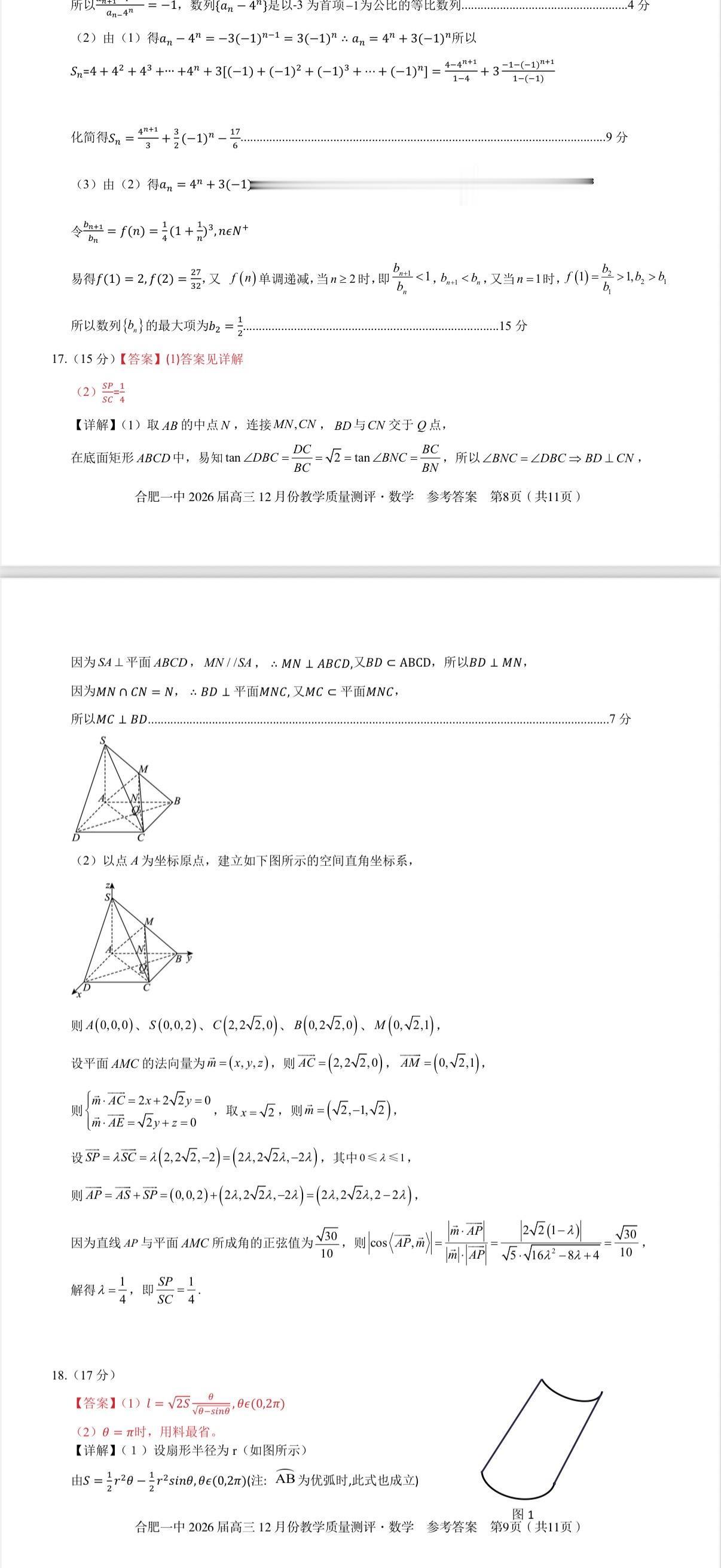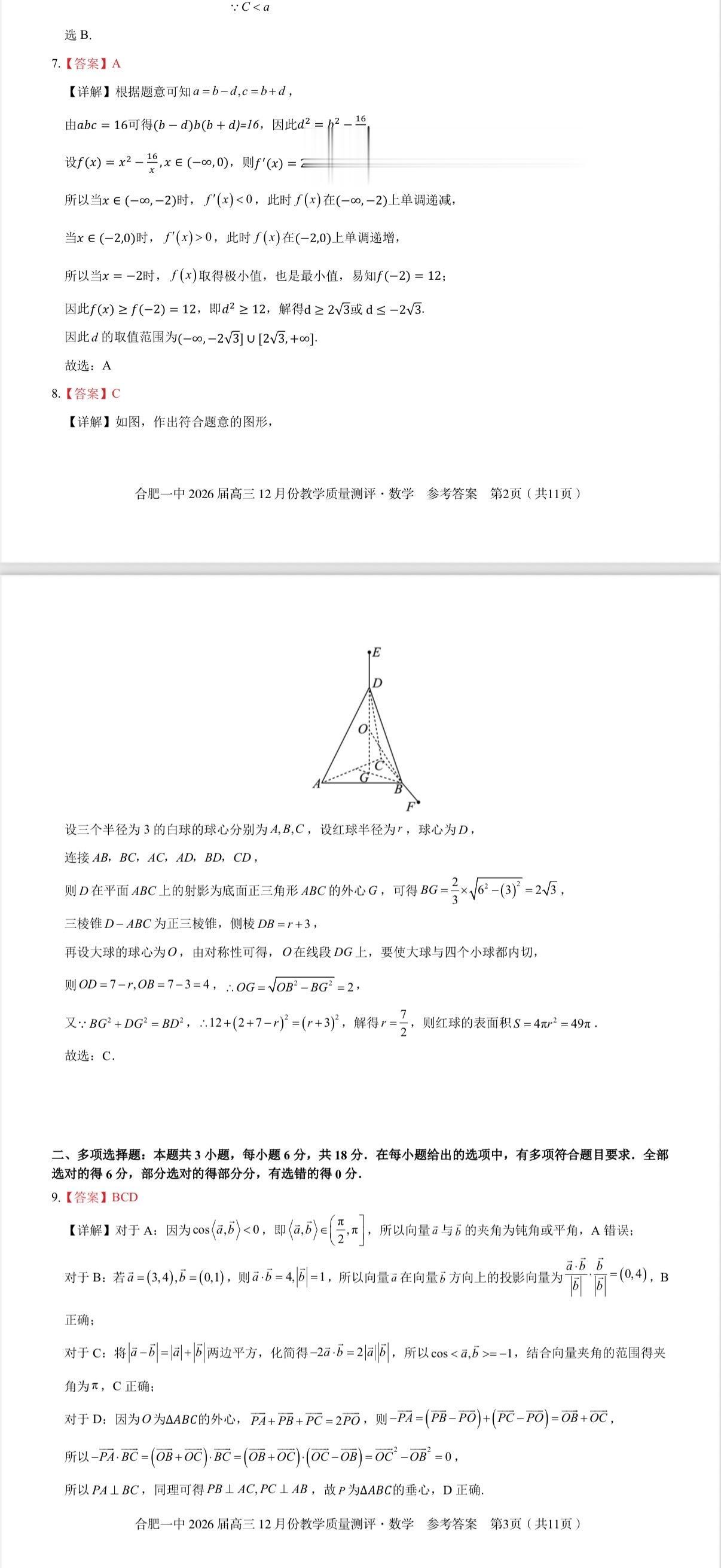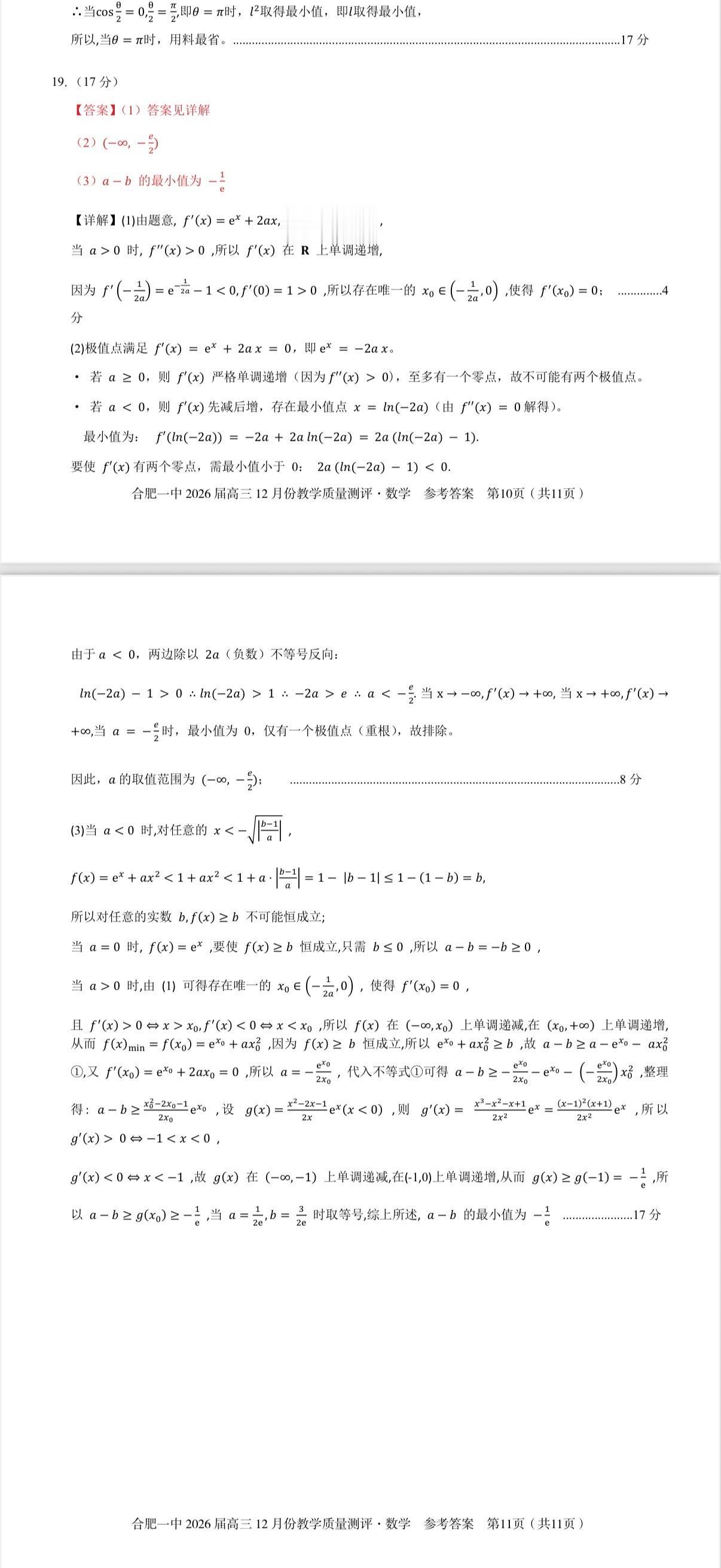 合肥一中2026届高三12月月考数学试题,因为一轮复习没结束,概率、解析几何没考