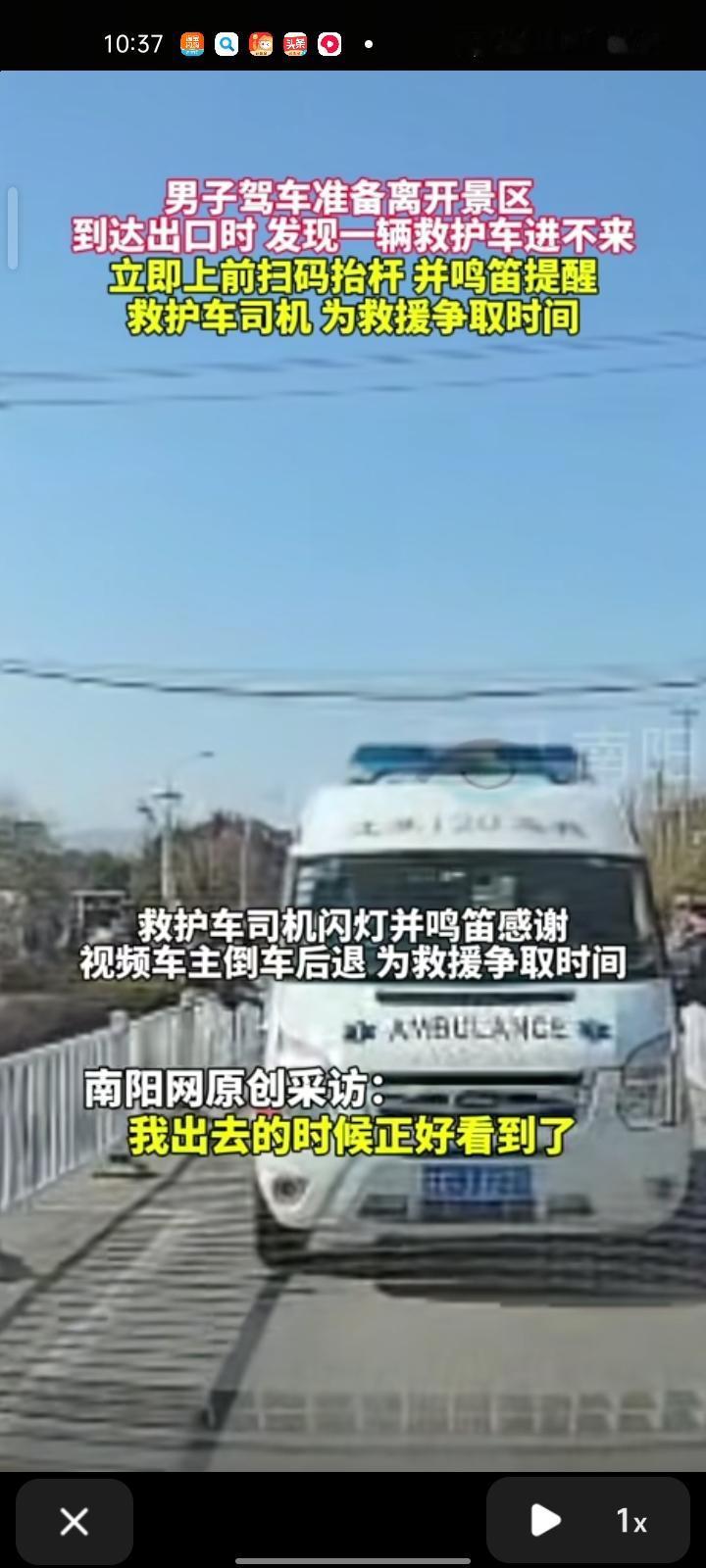 12月14日,江苏苏州。男子驾车准备离开景区,到出口就发现一辆救护车进不来,立即上前扫码抬杆并鸣笛提醒救护车司机,为救援争取时间。当事男子称,自己做了件普通的小事,希望病人能得到及时救治