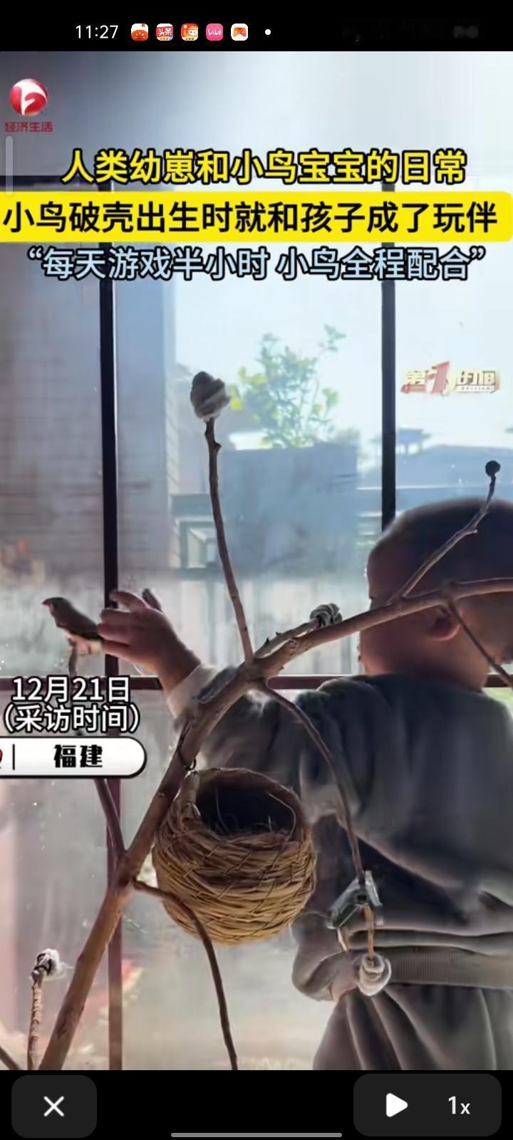 12月21日,福建泉州。孩子妈妈晒出孩子与小鸟宝宝的日常,小鸟破壳出生时和孩子成为玩伴,抓它们的时候都是轻轻的,每天游戏半小时,小鸟全程很配合。如果小鸟不想玩了,自己就飞走了。