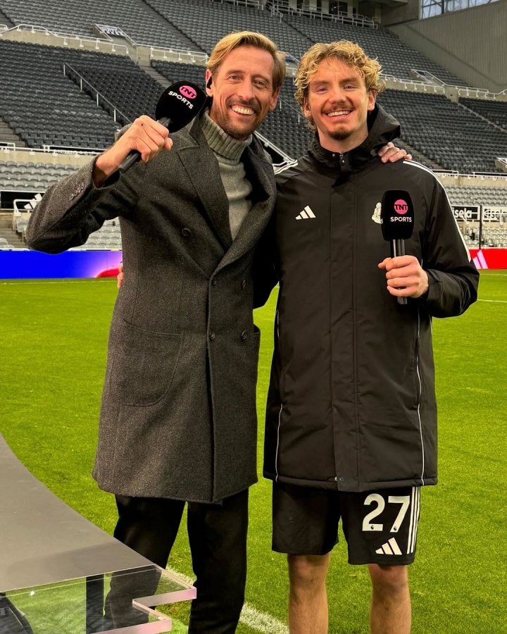 直播吧12月21日讯英超第17轮,纽卡2-2切尔西。本场比赛,纽卡前锋沃尔特马德梅开二度。赛后,1米98的沃尔特马德与2米01的克劳奇见面。