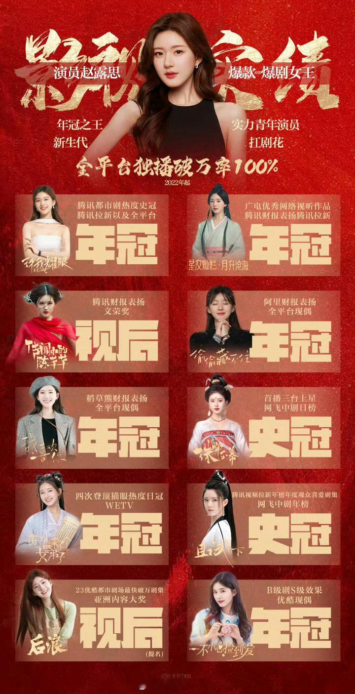 赵露思实打实用成绩单夺得平台年冠王,今晚拿什么奖都算是实至名归了95花压轴星光大赏