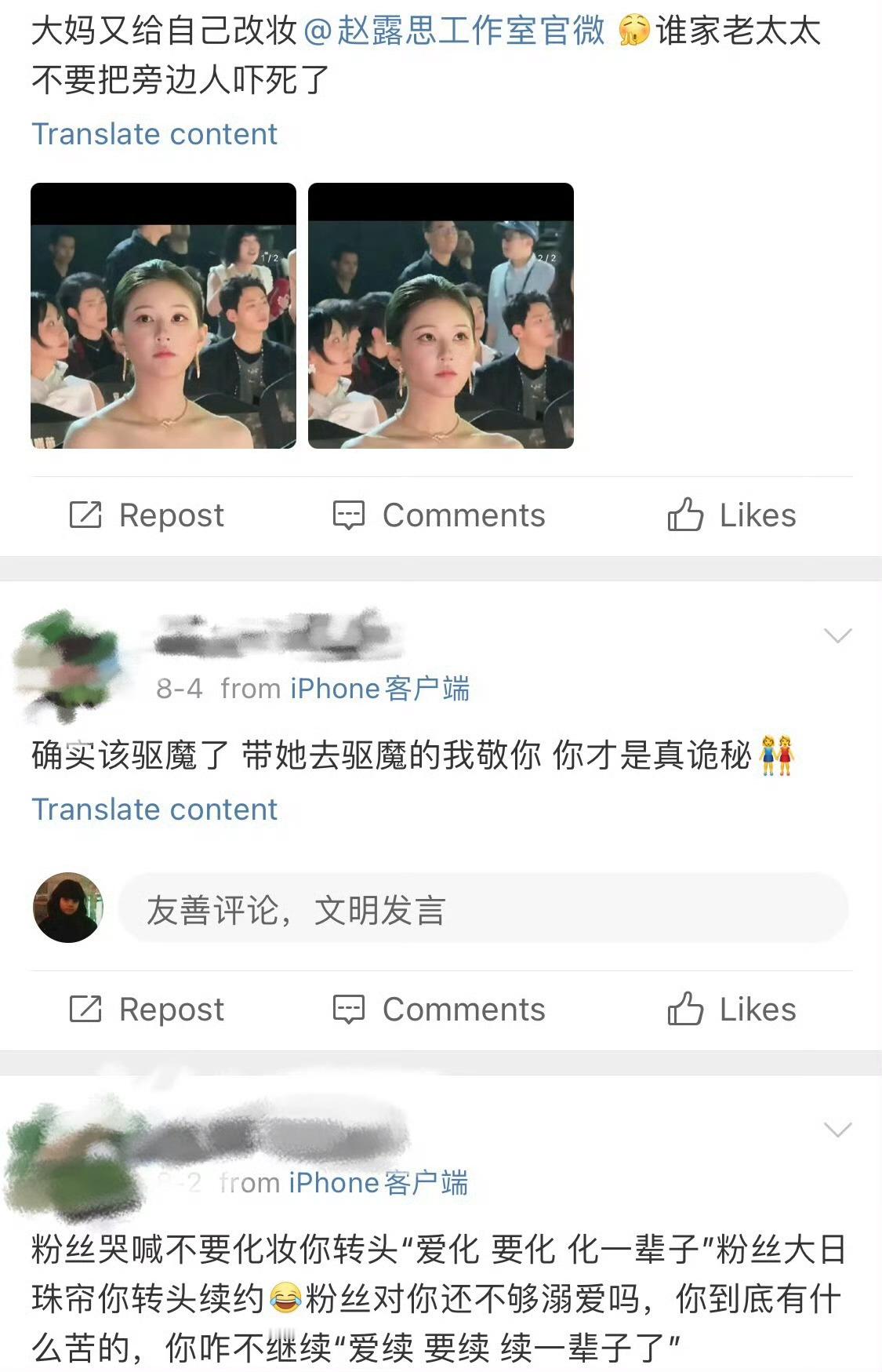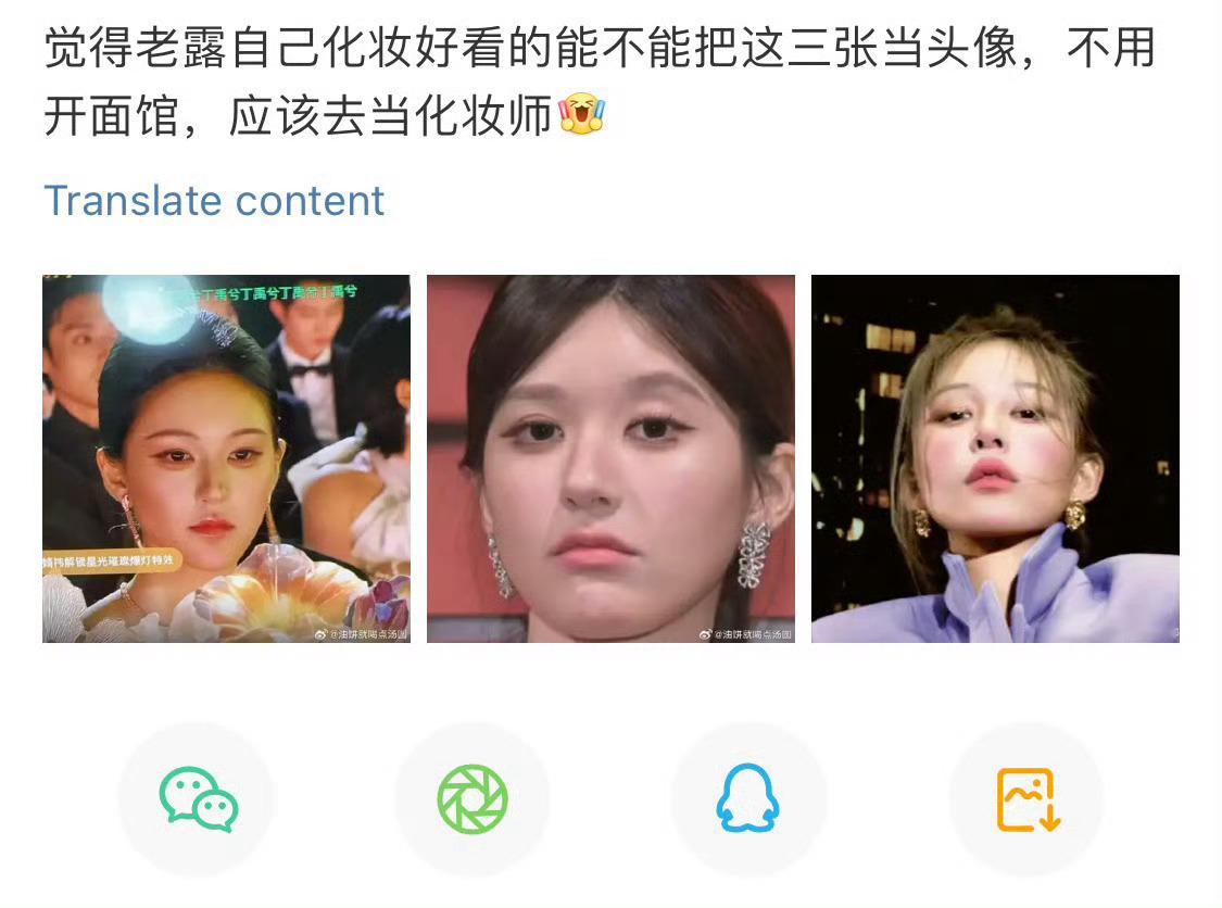 露的问题不是自己化妆,是没有风光归来的劲头。 不是说么 出事后第一次出现一定不能颓不能丧,露虽然不是丧,但是颓 甚至怯生生的。带着平台年冠作品回来 拿出点老娘第一的劲劲儿来,今天就不一样了。