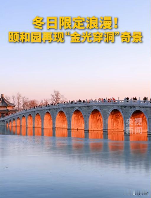北京冬至顶流上线 🌇北京冬至顶流奇观刷屏!6秒看完让人心颤,这道穿桥金光竟藏着两百年未被揭开的遗憾?每年此刻,无数人奔赴颐和园只为这转瞬即逝的浪漫。 夕阳西沉时,余晖精准穿透十七孔桥的十七个桥洞,鎏金光芒铺满洞壁,昆明湖面泛起层层金色涟漪,与桥洞光影交相辉映,宛如仙境✨。岸边早已挤满“追光者”,有人凌晨6点就来蹲机位,三脚架排成长龙,快门声此起彼伏,只为定格这仅持续20分钟的视觉盛宴❄️。 这是自然与匠心的完美邂逅,冬日萧瑟里,光为古桥写下最温暖的诗。“虽由人作,宛自天开”,古人对天文与建筑的精妙把控,让每一缕阳光都成为园林的点睛之笔。 可谁能想到反转?这震撼奇观,乾隆皇帝竟从未见过!史料记载他仅上午游颐和园,午时便返程,而金光穿洞只在下午3:30-4:20上演,成了跨越两百年的时空遗憾。 你今年去追这道金光了吗?没拍到的话,明年要不要约一波蹲最佳机位?6秒带你看颐和园冬至金光穿洞奇观 北京冬至顶流奇观上线 冬至 颐和园