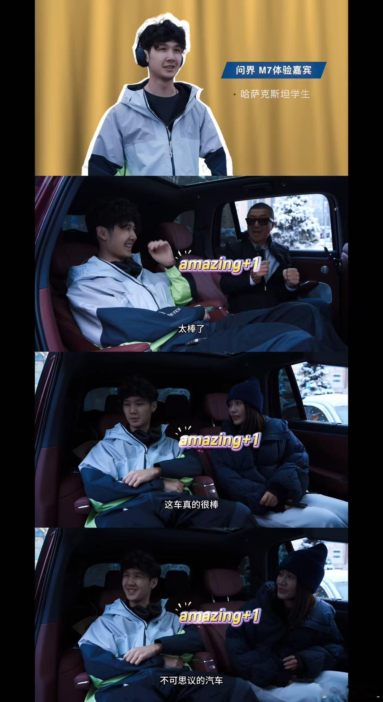 问界M7哈萨克斯坦引围观哈萨克斯坦街头的问界M7也太吸睛了!海外网红一坐进车内就惊到直呼amazing,智能语音指令秒执行,这波中国智能汽车的实力,在海外直接圈粉无数海外网红体验问界M7直呼amazing