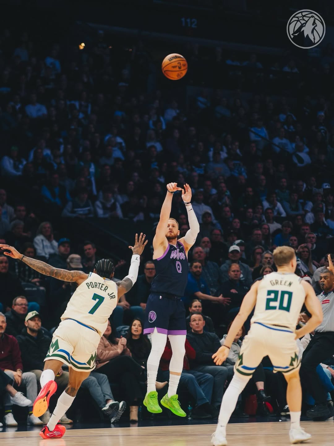 森林狼官方更新社媒,晒出丹特-迪温琴佐今日赛场瞬间照片