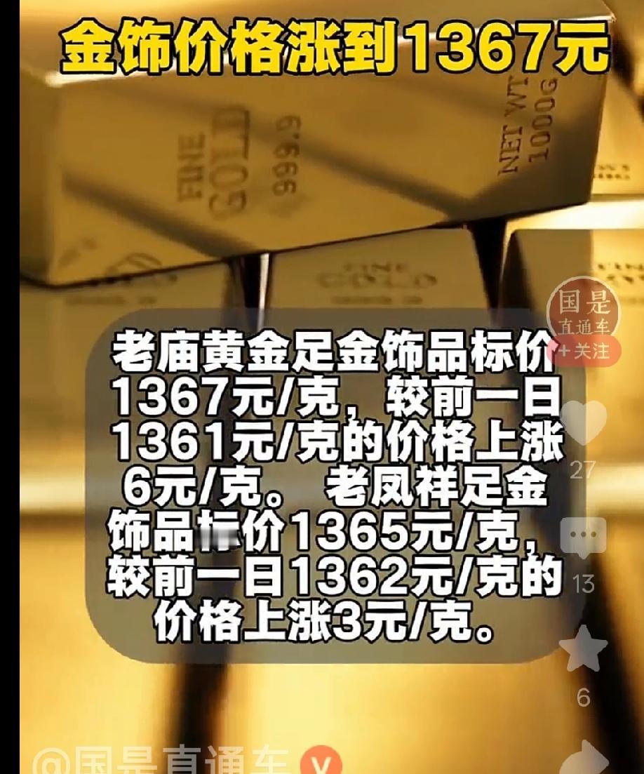 金饰价格飙至1367元/克!年轻人疯狂囤金豆,背后藏着最清醒的时代真相 金饰克价突破1367元!打开周大福、老凤祥的价签,不少人直呼“看不懂”——年初还800元左右的金价,一年暴涨超70%,一枚60克的婚庆金镯,现在比年初贵了3.2万元还多,准备结婚的年轻人直呼“压力山大”。 但奇怪的是,柜台前依然排着长队,只不过抢购主力从“中国大妈”换成了90后、00后。小红书上“攒金豆挑战”笔记超50万篇,年轻人每月省出奶茶钱,就为了存下1克小金豆,曾经被嫌“老气”的黄金,如今成了年轻人的“安全感密码”。 这波金价疯涨绝非偶然,而是多重力量的叠加。美联储一年三次降息,美元贬值让黄金成了资本“避风港”;中东冲突、俄乌局势动荡,“乱世买黄金”的古老逻辑再次生效;更关键的是,全球央行都在疯狂囤金,我国央行已连续13个月增持,95%的央行都计划继续加仓,黄金成了各国储备的“压舱石”。叠加年底婚庆、送礼的刚需,金价自然一路狂飙。 但年轻人囤金,早已跳出“追涨赚钱”的单一逻辑。面对房价波动、股市震荡、工作不确定性增加的当下,“不亏”比“暴富”更重要。1克金豆几百元的低门槛,让黄金成了“轻量版理财”,不用懂复杂行情,每月攒一颗,慢慢攒出应对风险的底气。更难得的是,黄金早已摆脱“老气”标签,三星堆元素吊坠、故宫联名手链,把国潮美学融入设计,日常佩戴显个性,急用钱时能变现,实用与审美完美兼顾。 不过也得提醒一句:别把金饰当纯投资!1367元的价格里,包含了工艺费和品牌溢价,变现时可能只值900多。真想靠黄金保值,不如选投资金条或黄金ETF,配置占家庭资产的10%-15%就够,别盲目追高站岗。 从大妈抢金条到年轻人攒金豆,黄金热的背后,是一代人对“稳稳的幸福”的追求。不跟风、不盲从,在不确定的时代里,用理性选择为生活兜底,这才是最珍贵的“财富智慧”。 你最近入手黄金了吗?是为了结婚、保值还是单纯喜欢?欢迎在评论区分享你的经历,聊聊你眼里的“黄金热”!