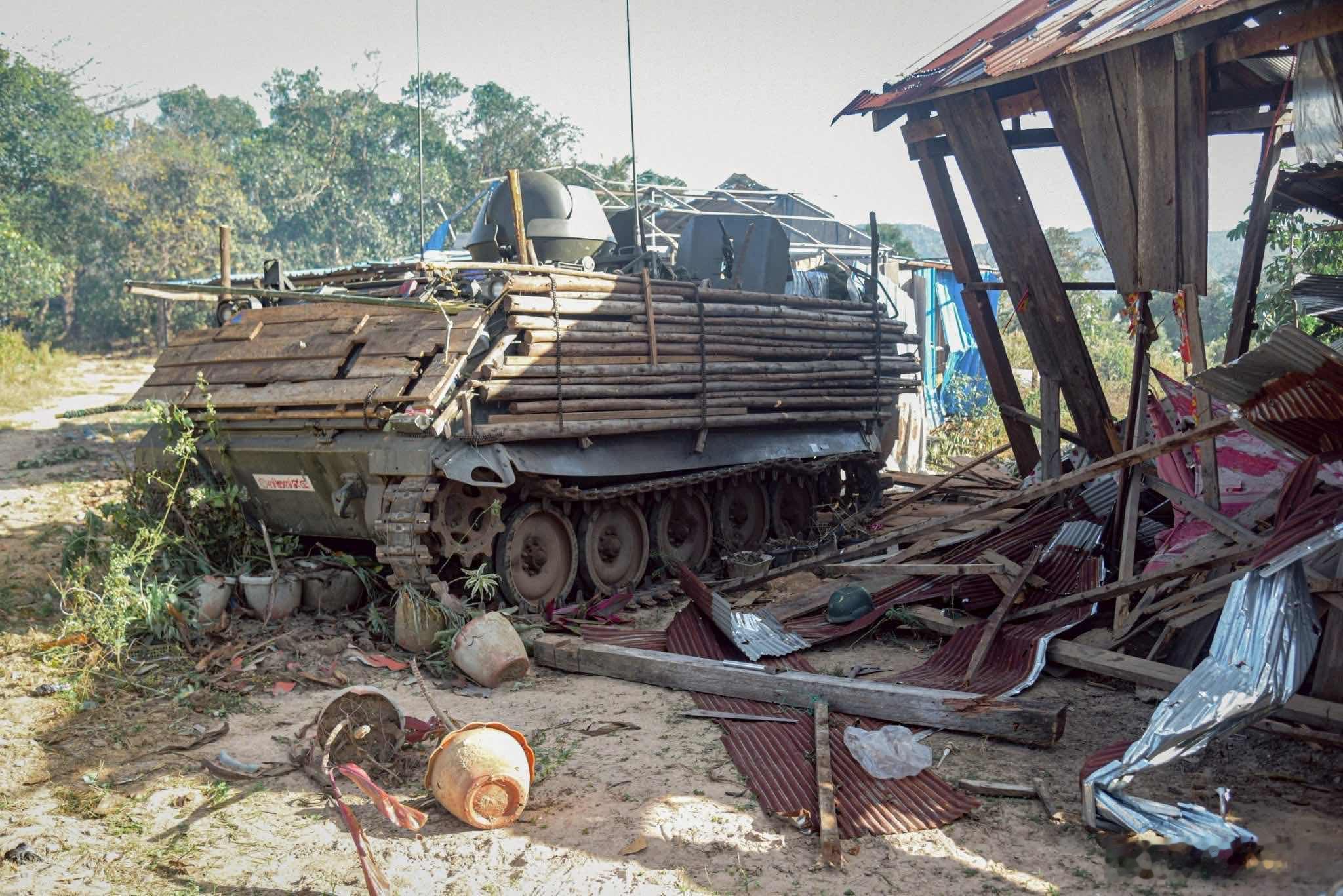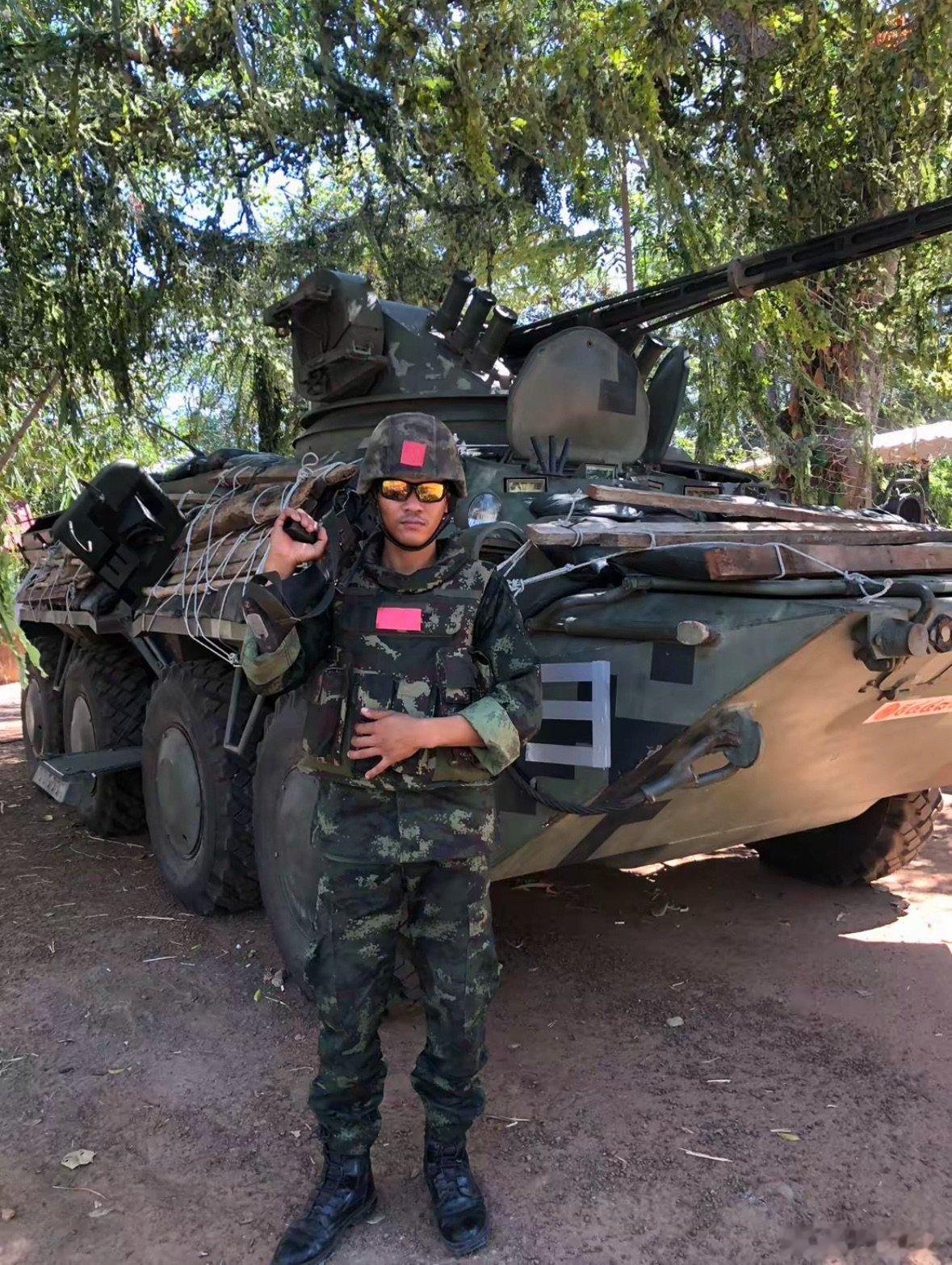 泰国VT-4、M113、BTR-3E1和AAVP-7A1用竹子和桉树棍作为附加装甲,AAVP-7A1还加装了防无人机网 泰柬边境冲突现场画面泰柬冲突
