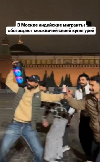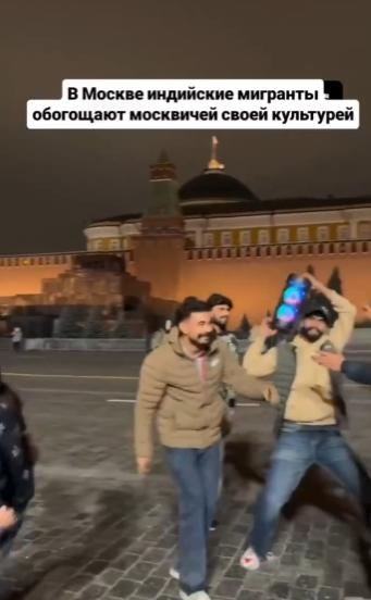 【在红场上,来自印度的移民正在用他们的文化丰富俄罗斯人的生活。据报道,这些印度人就是作为劳工队伍的一部分抵达莫斯科的同一批人。】