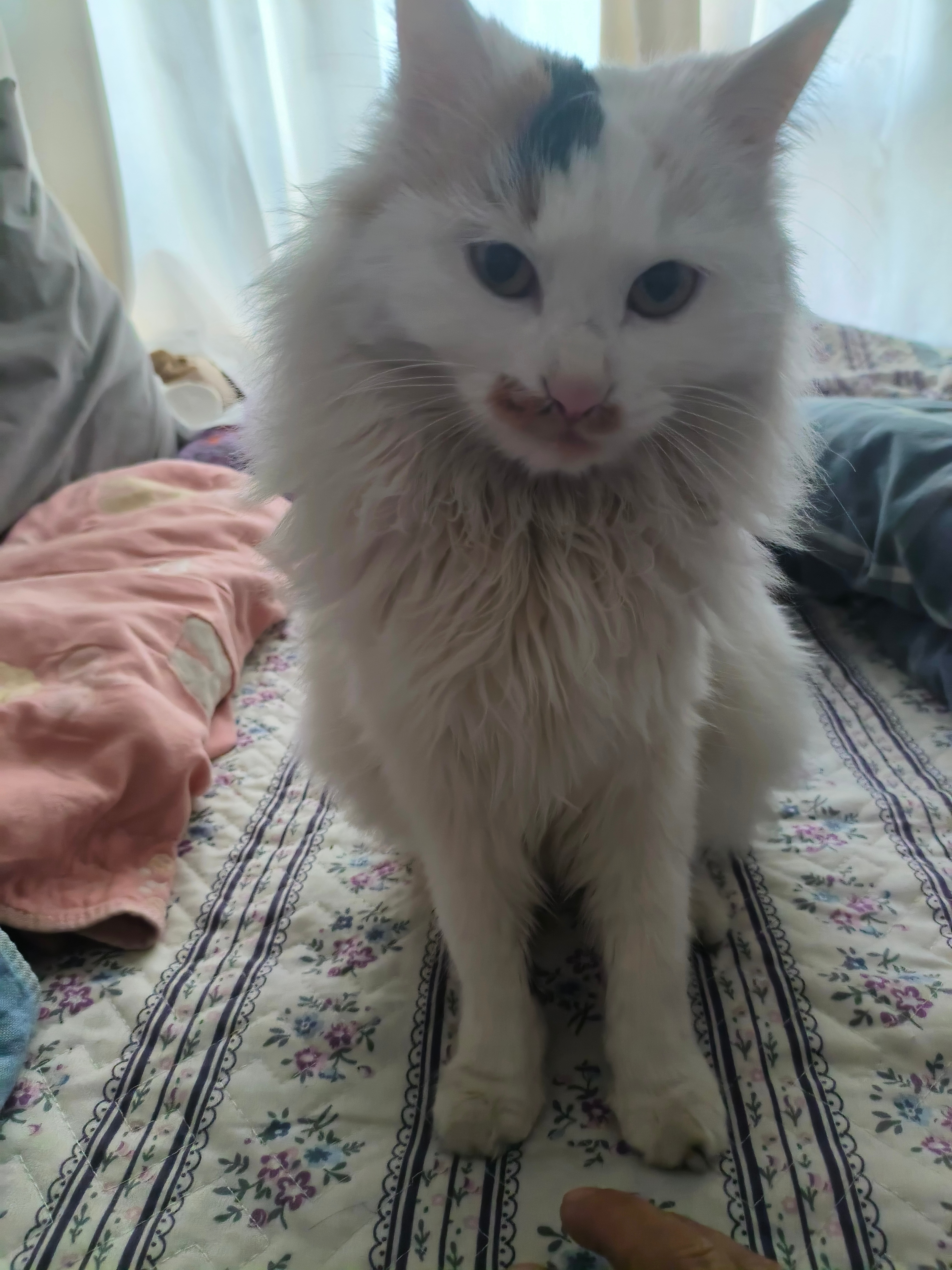 猫咪 今天的主角是这只头顶“小墨点”的长毛崽~刚洗完澡炸着毛,坐在床上一脸“被迫营业”的乖巧,伸手逗它就歪头晃尾巴,软乎乎的样子直接把心都揉化啦!猫 谁给饭吃我还是很清楚的猫咪起床气喵星人可以有多粘人