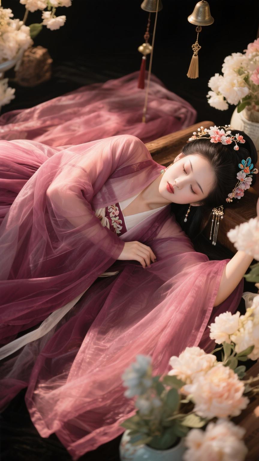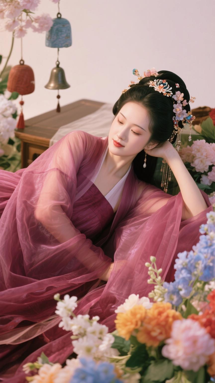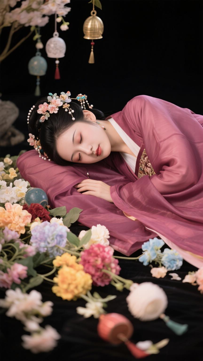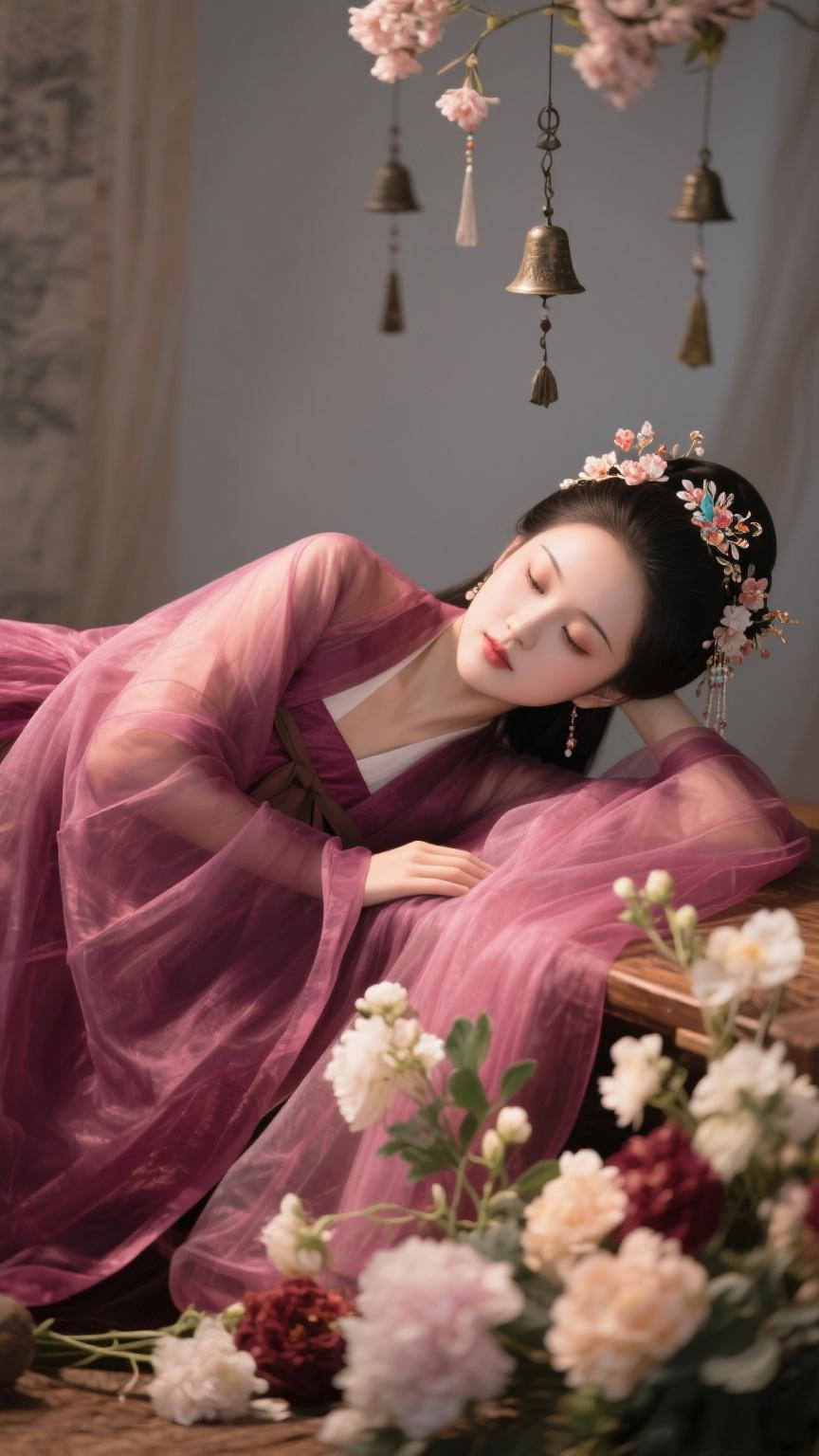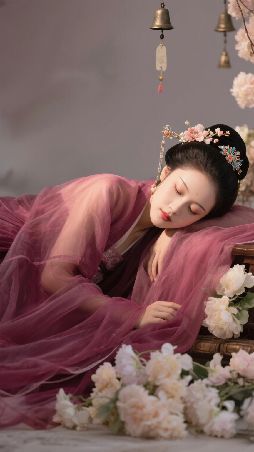 《醉花阴·绛纱凝香》 绛绡轻笼春衫薄,花落阶前寞。 铃语碎春风,一晌慵眠,香