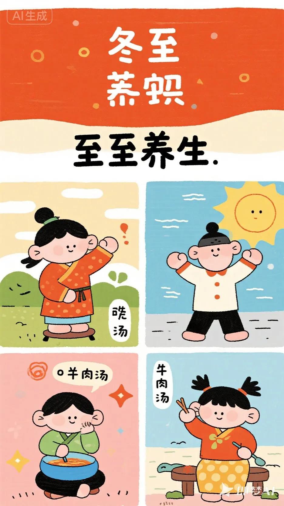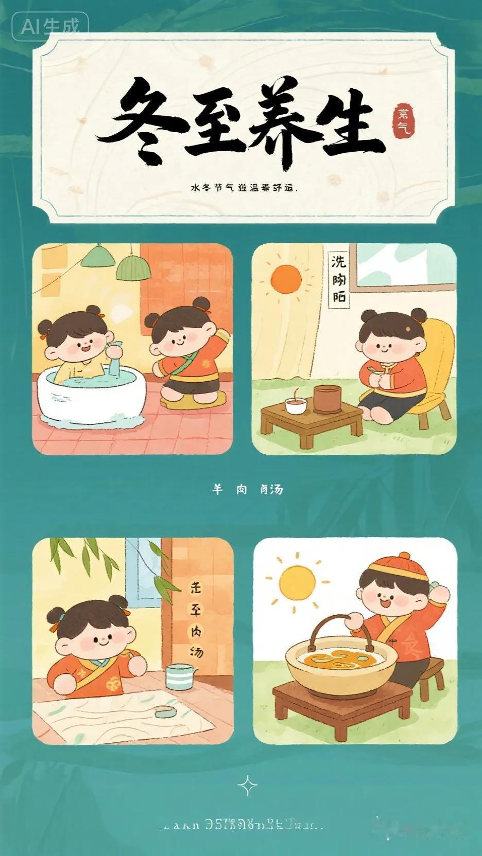 ❄️冬至阳气大补攻略!教你化身「人形暖宝宝」🔥 中医放大招:冬至后养阳=给身体充VIP! 1. 保暖护阳——阳气守护者 ❄️ 重点部位: - 肚子→暖水袋贴贴(宫寒退散!) - 脖子→围巾封印(颈椎病绕道!) - 脚丫→泡脚桶安排(生姜+艾叶=绝配) 🌞 晒太阳玄学:中午晒背15分钟=天然阳气充值卡! 2. 少动潜阳——低调养阳气 🏮 推荐运动:八段锦/太极拳(微微出汗即可) 🚫 禁忌:晨跑请等太阳起床!暴汗=阳气外泄警告 3. 饮食助阳——舌尖上的阳气 🍖 必吃清单: - 羊肉汤(驱寒王者) - 姜母鸭(闽南人祖传暖身术) - 黑豆红枣粥(补肾小能手) 💧 喝水玄学:温水小口喝=给阳气开加湿器 4. 早睡生阳——被窝里的阳气银行 🌙 22点前上床=阳气存定期! 😴 睡眠黄金公式:22:00睡+7小时=阳气满格 5. 安神养阳——情绪阳气充电站 🧘♀️ 少焦虑=省阳气! 😄 心情舒畅=血脉自动导航(堵车都不气那种!) 📢 冬至养生口诀 保暖不捂汗,早睡不熬夜, 温补不贪辣,泡脚不偷懒! 转发给怕冷的小伙伴,一起做冬日「阳气富翁」!💸