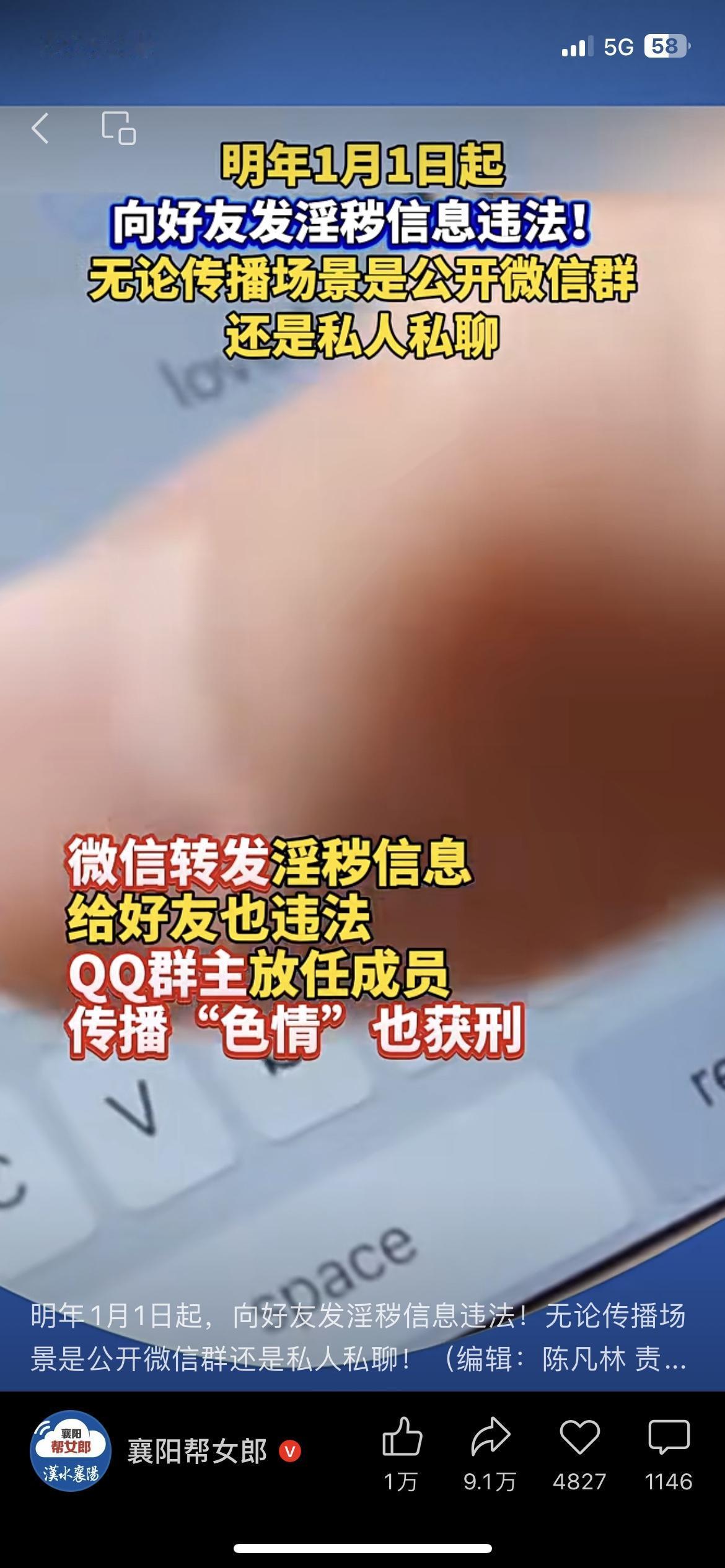 明年1月1日起,私发低俗信息真的要挨罚了! 我表妹上个月被合作方发露骨图片骚扰,拉黑还换号发,报警都没好办法。 新规明确:微信群、私聊发淫秽信息,最高拘15天+罚5000元! 群主放任群里传黄,也可能担责! 划重点:保存聊天记录+截图,直接报警或打12377举报 你遇到过这种恶心人的骚扰吗?怎么处理的?低俗色情