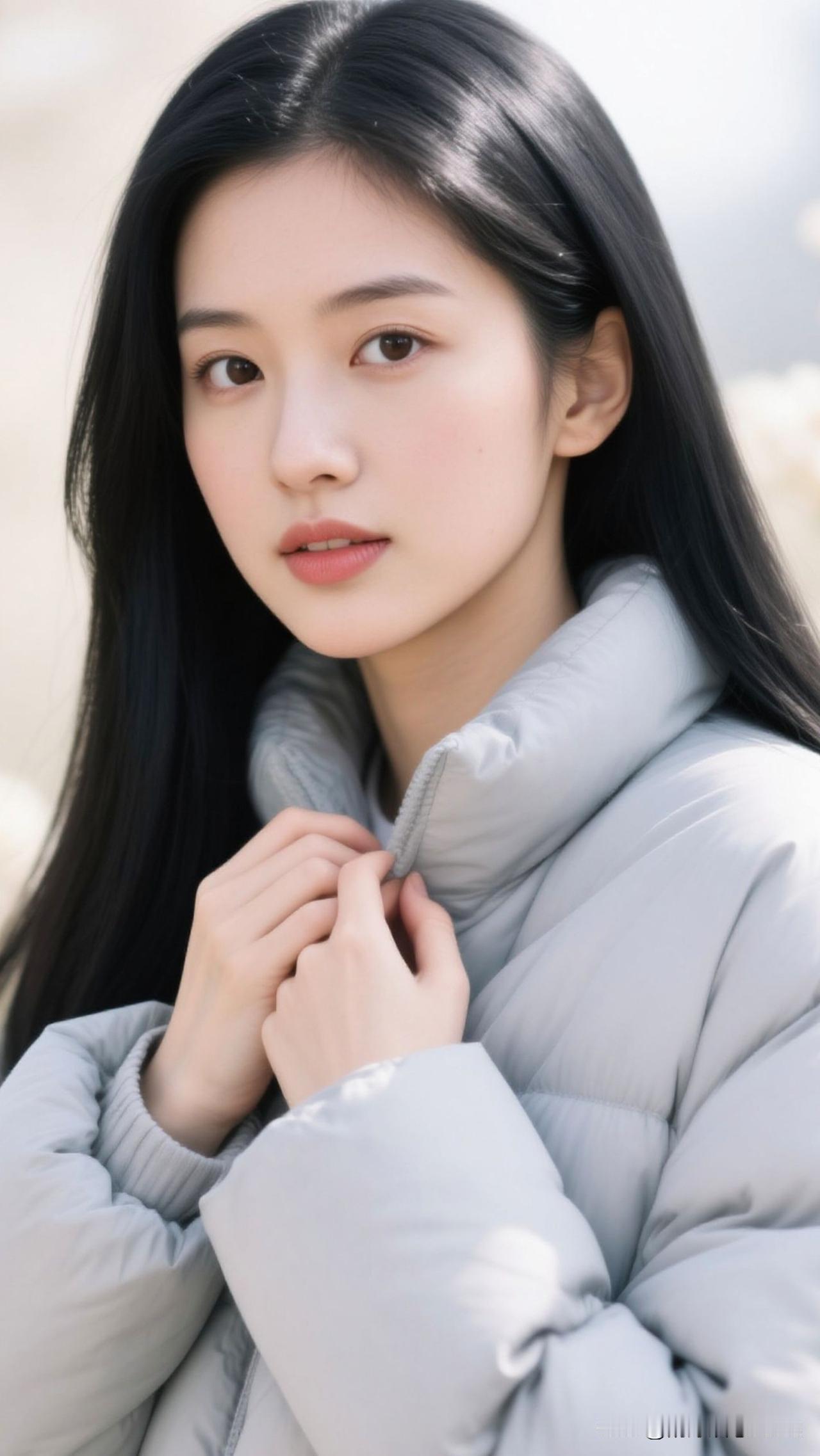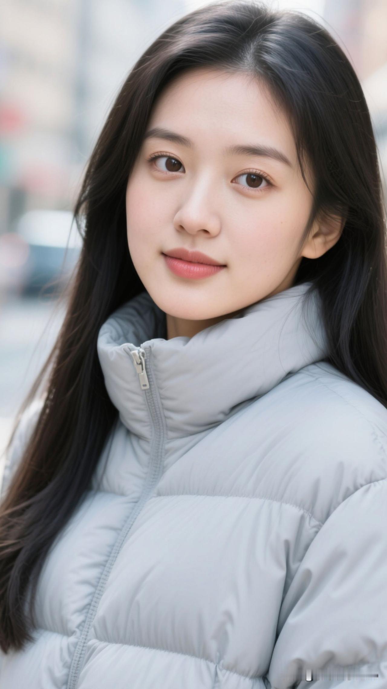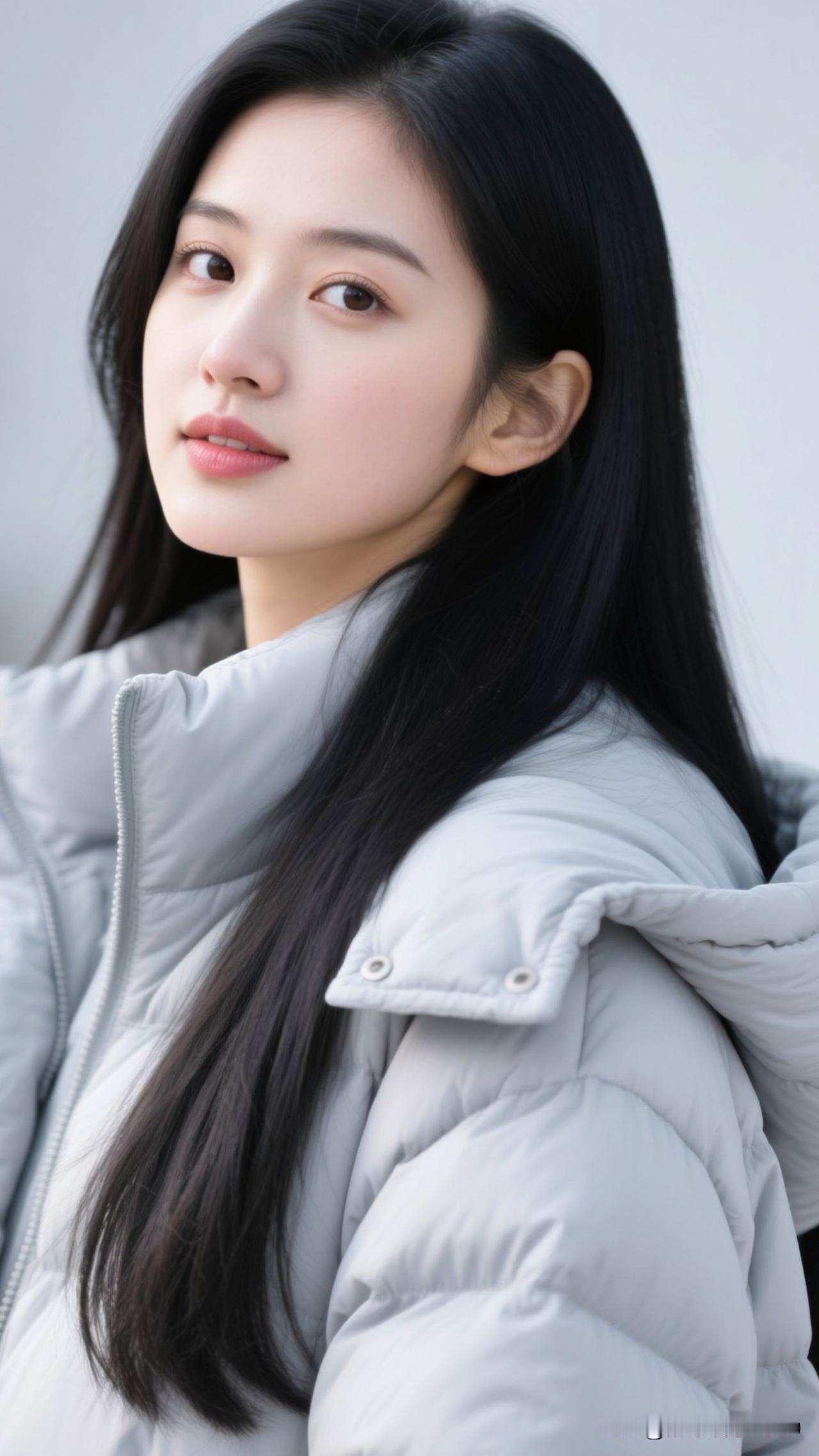 ❄️ 浅灰羽绒裹住冬的静谧,长发曳着光的柔,整个画面都浸着清冽又治愈的暖。温柔风