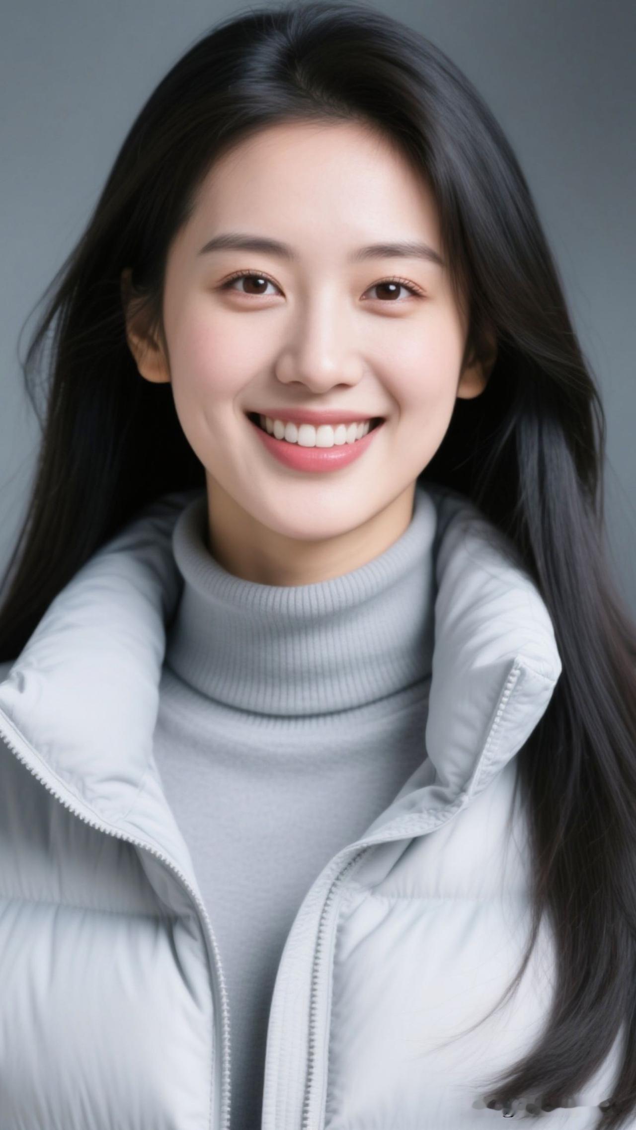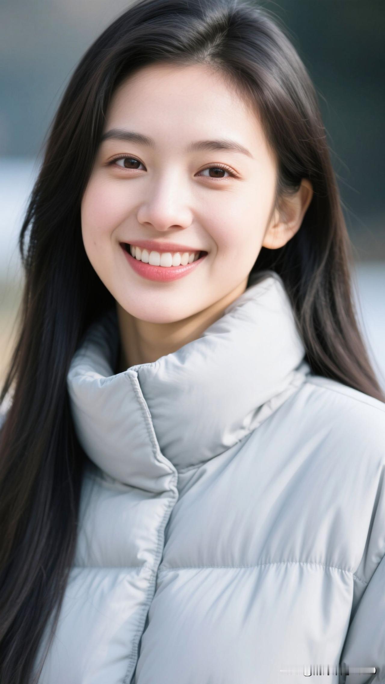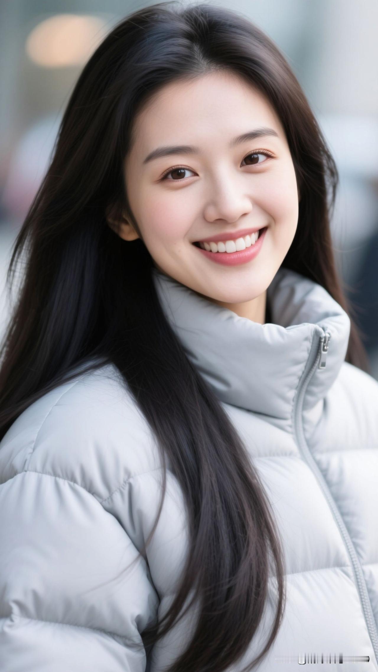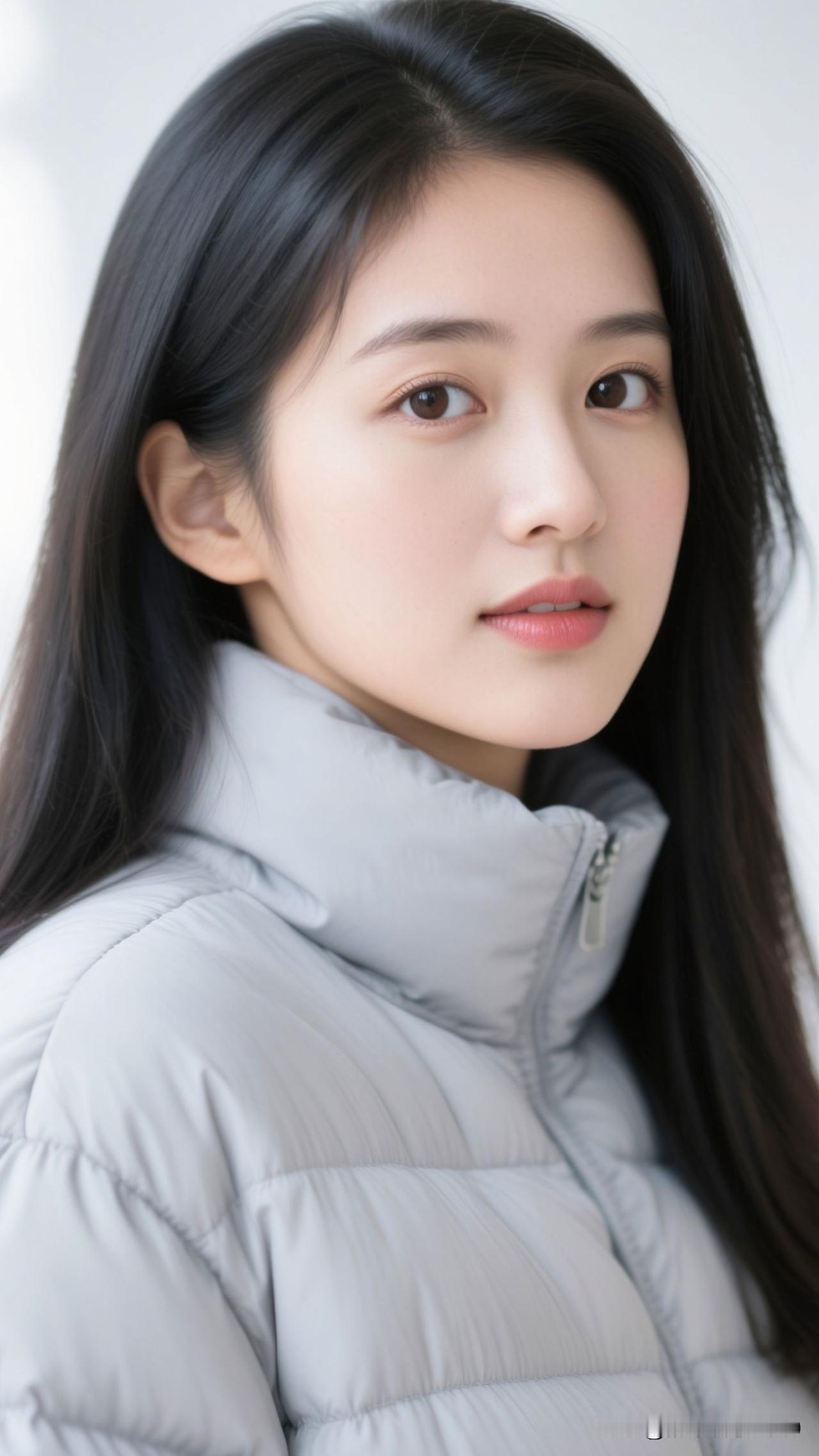 ❄️ 浅灰羽绒裹住冬的静谧,长发曳着光的柔,整个画面都浸着清冽又治愈的暖。温柔风